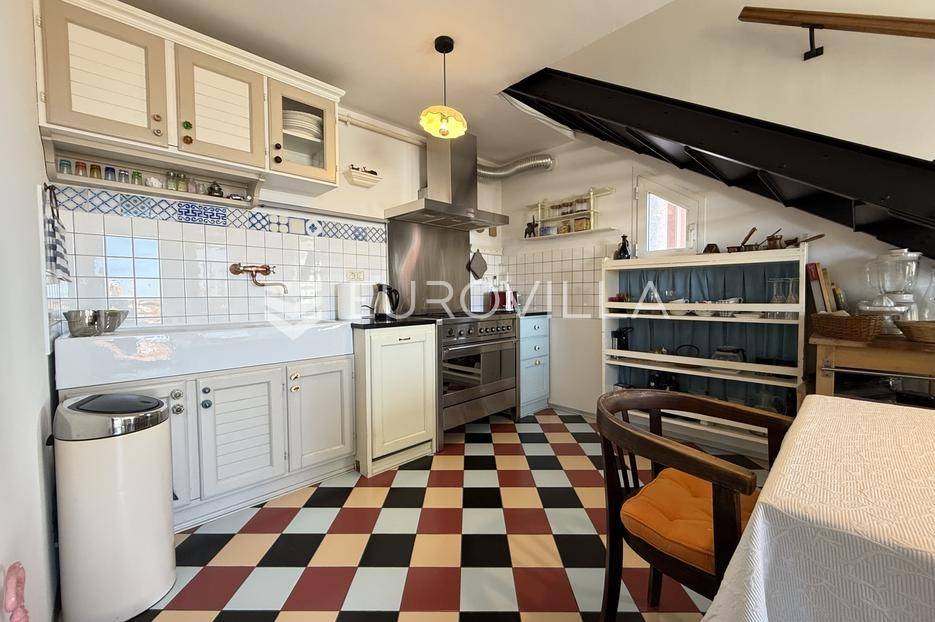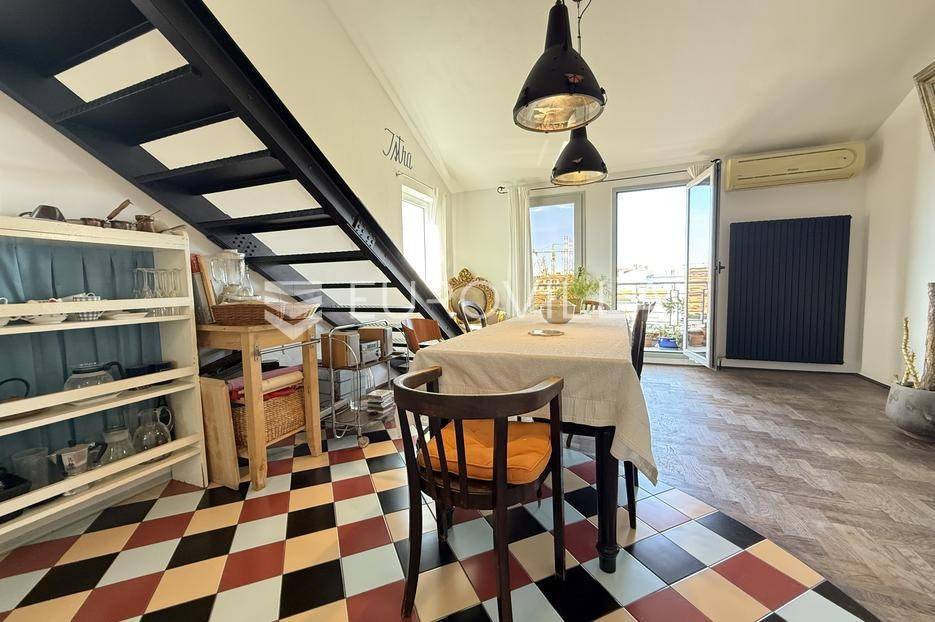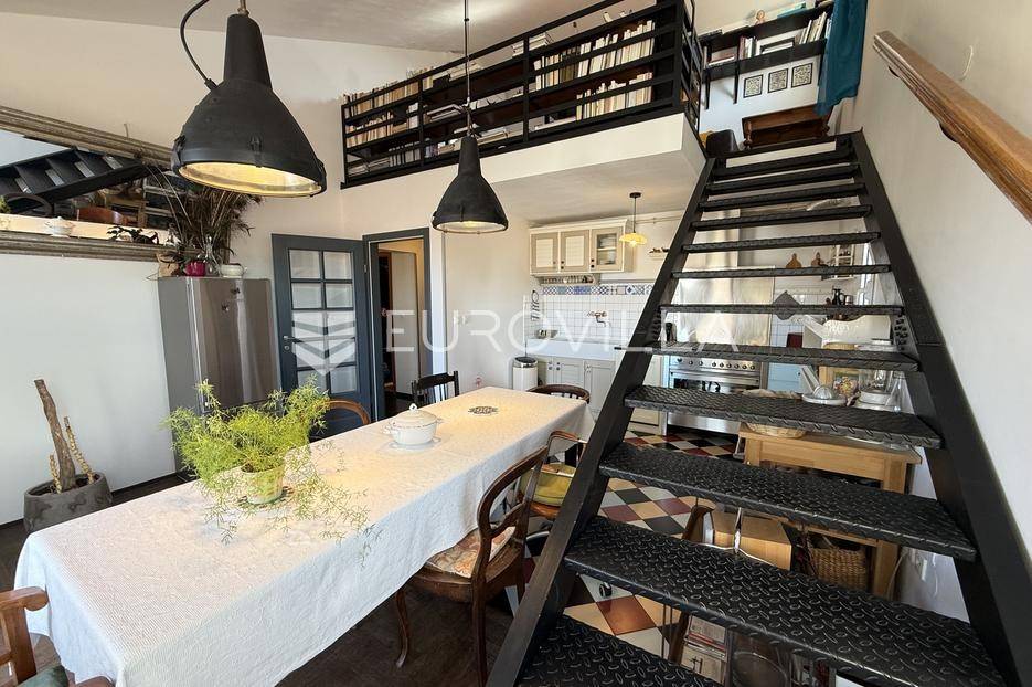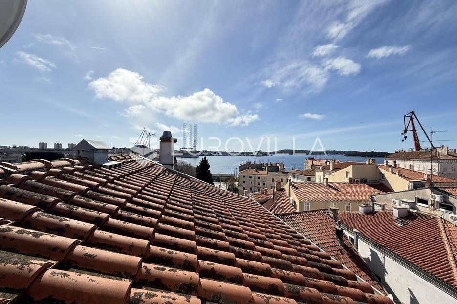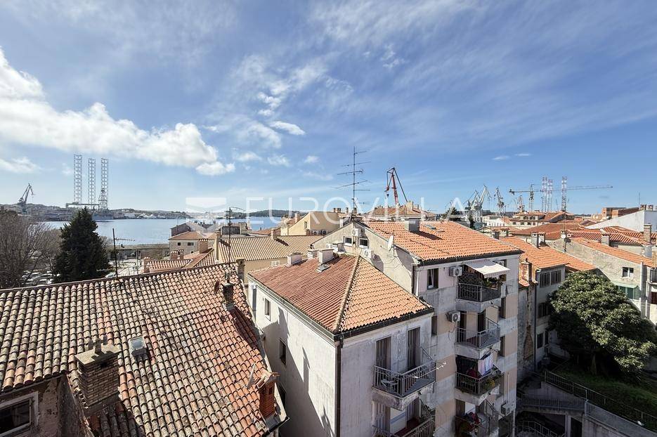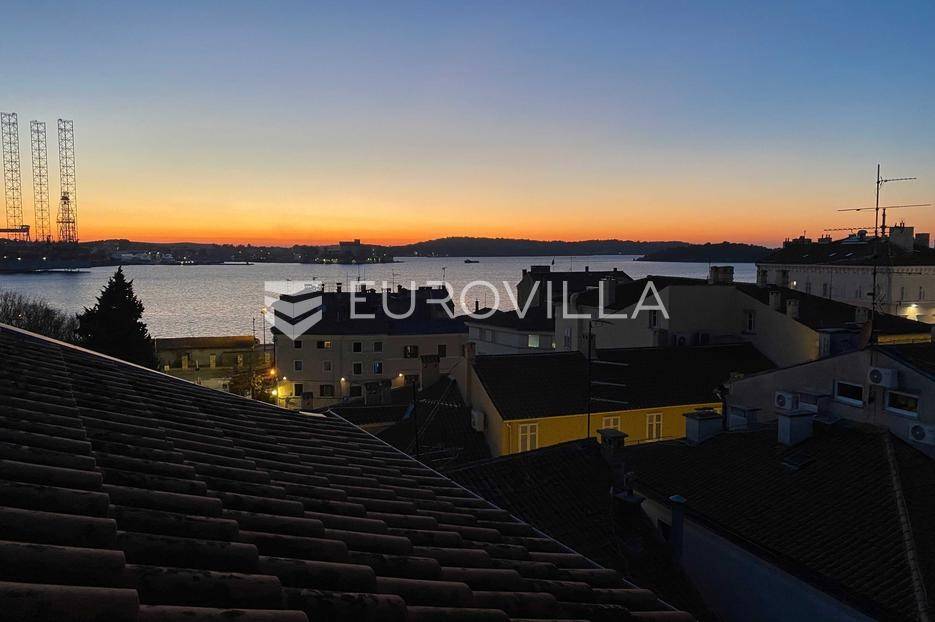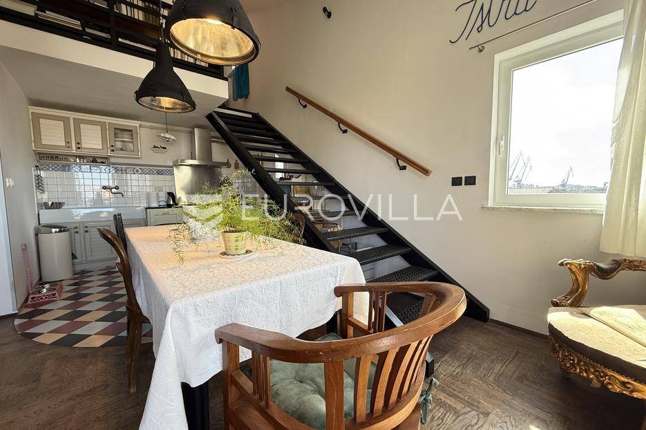 Smješten u strogom centru Pule, u pješačkoj zoni te nedaleko od Foruma, prodaje se ovaj prekrasni i osunčani, dvoetažni dizajnerski stan iz kojeg se pruža otvoreni pogled na more. Stan se nalazi na četvrtom katu održavane stambene zgrade. Sastoji se od ulaznog hodnika, hodnika/predsoblja, garderobe ( mogže poslužiti i kao spremište), kupaonice, dvije spavaće sobe koje dijele loggiu, prostrane kuhinje i blagovaonice s izlazom na balkon iz kojeg možete uživati u nesmetanom pogledu. Unutrašnje stepenice iz blagovaonice vode Vas na galeriju te u nastavku u radnu sobu. Uz male preinake te po potrebi, možete dobiti još jednu spavaću sobu.Interijer je pomno i umjetnički biran tako da osigurava toplinu doma. Većinu podnih obloga dominira parket dok je u ostatku stana mramor.Grijanje stana je na gradski plin. Također, u dnevnom djelu te u jednoj spavaćoj sobi se nalazi klima uređaj.Osim što je stan veoma komotan, njegova najveća prednost je sama lokacija. Iako je smješten u strogom centru grada i sve bitne stvari za život su na svega par koraka, dovoljno je udaljen od same gradske buke i vreve te budućim vlasnicima osigurava mir i tišinu.Ukoliko želite saznati više informacija ili dogovoriti termin razgledavanja ovog prekrasnog stana stojimo Vam na raspolaganju.... Više na eurovilla.hr, ID: 535077