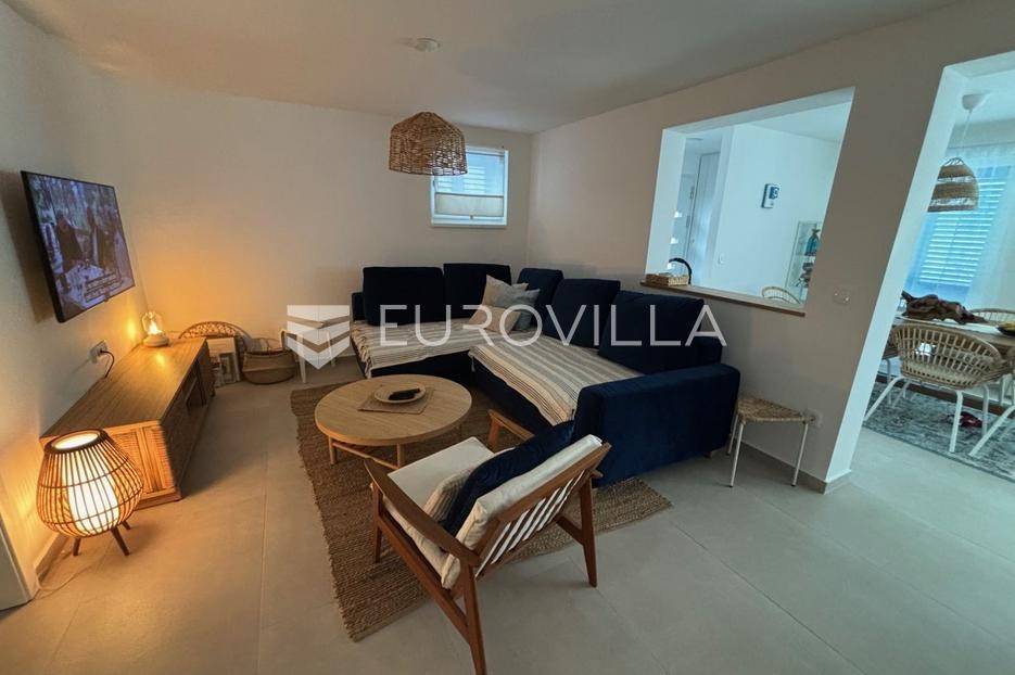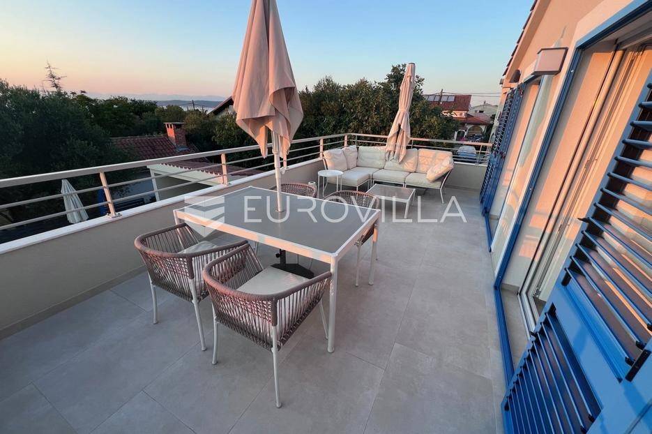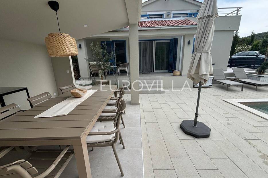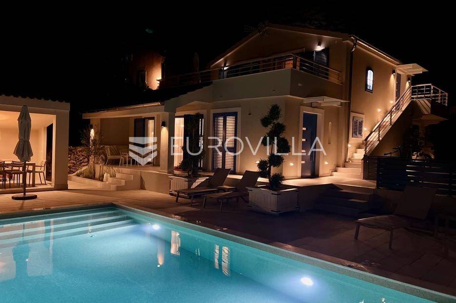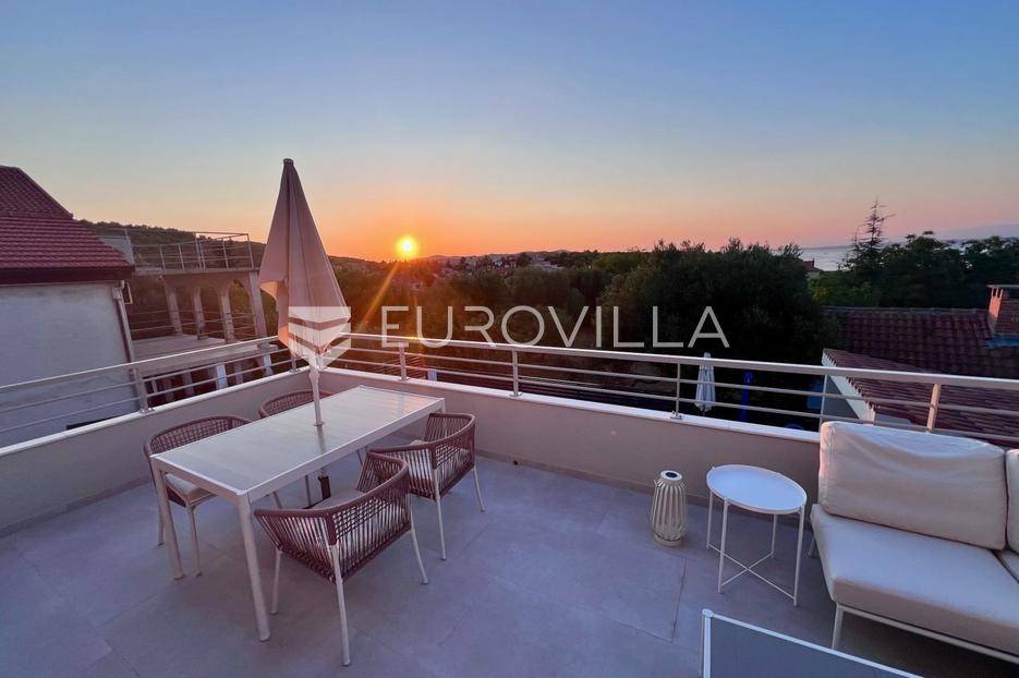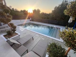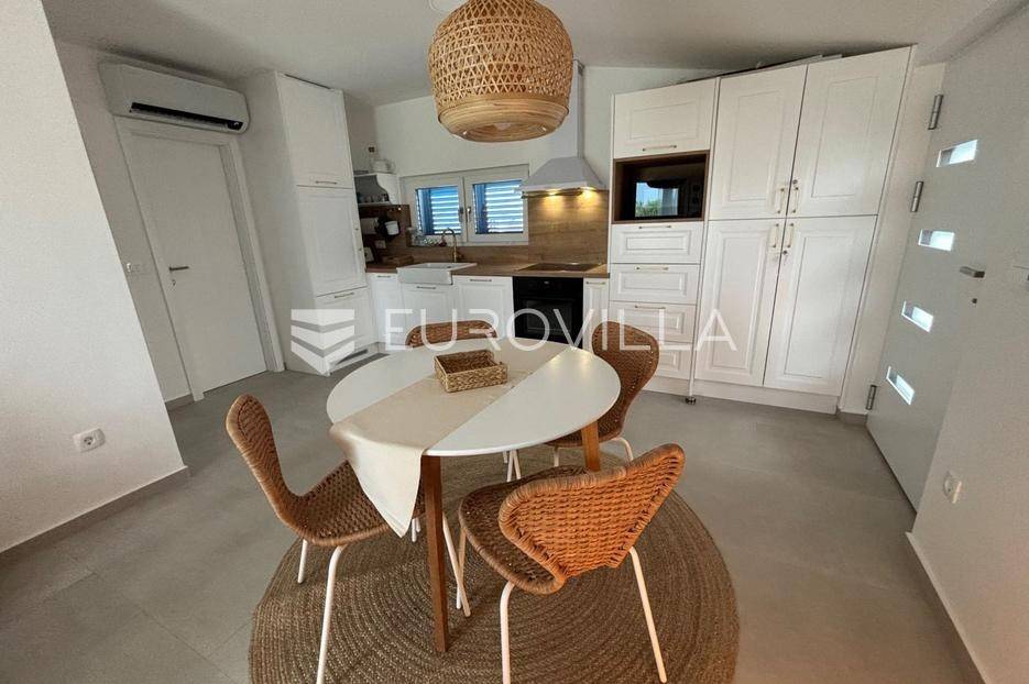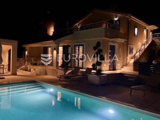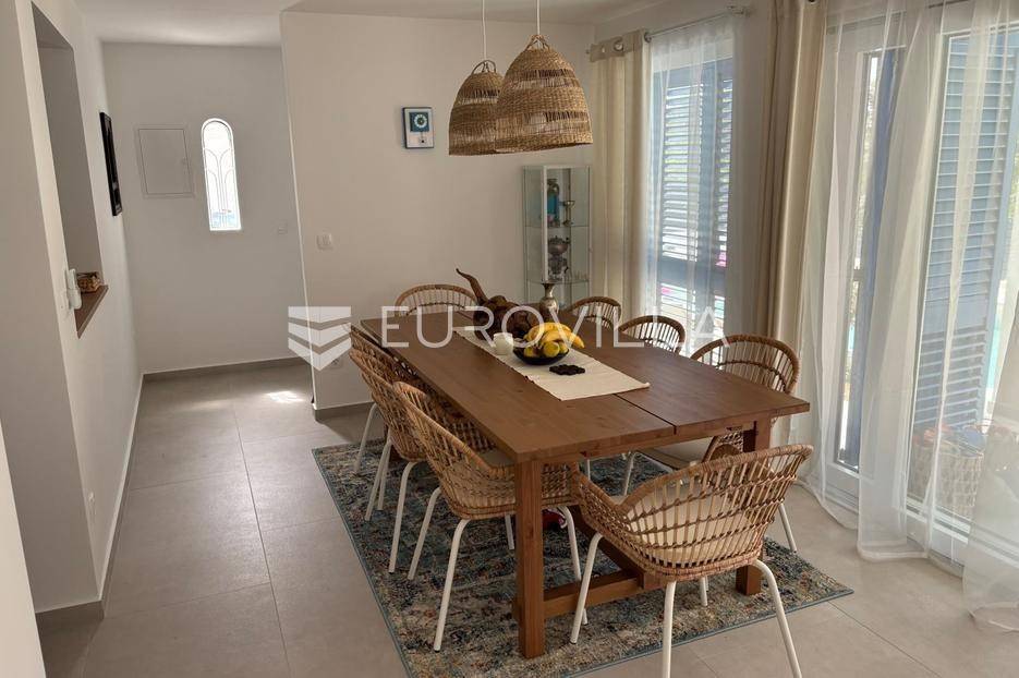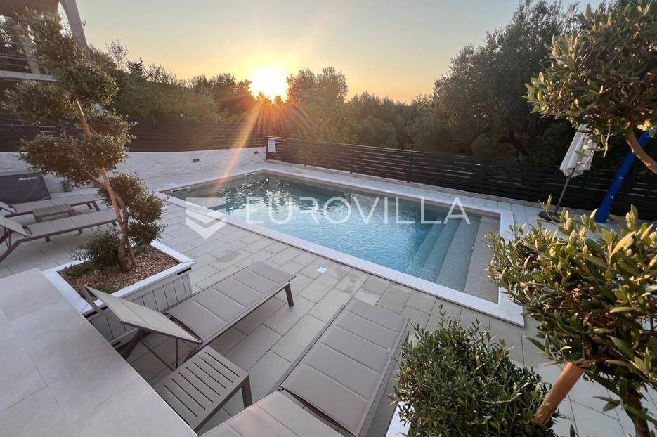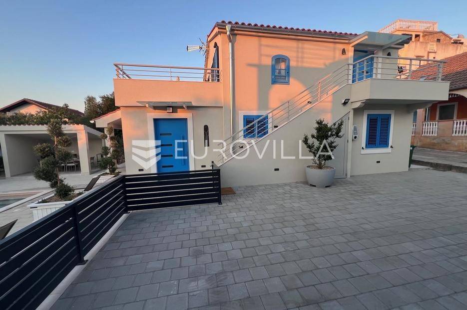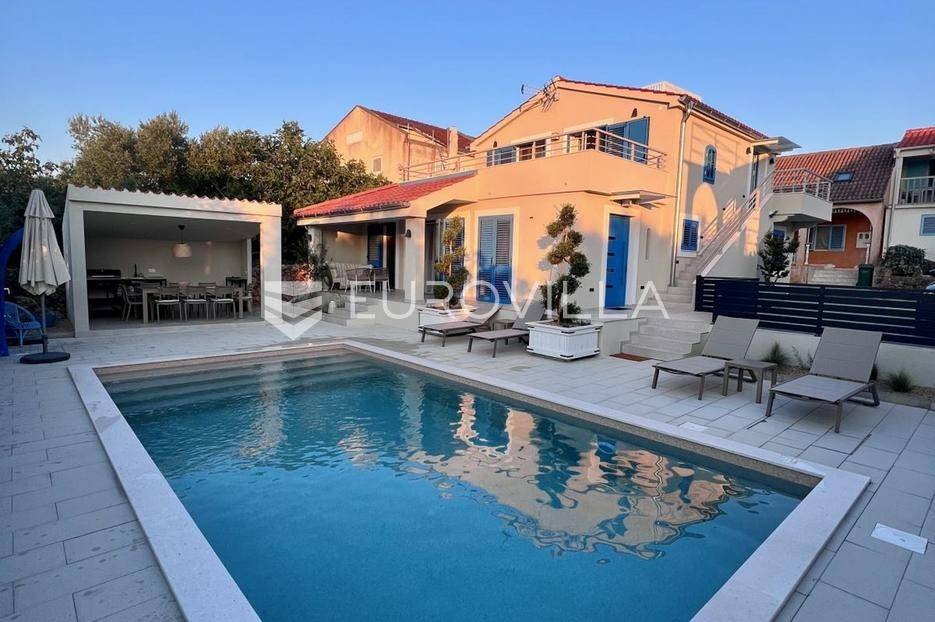 Pašman, Ždrelac, samostojeća kuća na dvije etaže nalazi se na zemljištu površine 349 m2.Sastoji se od prizemlja i kata koji su funkcionalno povezani vanjskim stubištem.Prizemlje se sastoji od ulaznog prostora, dvije spavaće sobe, kupaonice, gostinjskog wc-a, dnevnog boravka, prostrane blagovaonice i prekrasne kuhinje te terase koja kuću povezuje s dvorištem.Druga etaža sastoji se od spavaće sobe kupaonice, te kuhinje, blagovaonice i dnevnog boravka otvorenog koncepta s izlazom na terasu s koje se pruža pogled na more, zelenilo i grad Zadar.Kuća je potpuno i kvalitetno opremljena, a pri uređenju pazilo se na brojne detalje.U dvorištu kuće nalazi se grijani bazen, dimenzija 8mx4m te solarni tuš. Strojarnica bazena je opremljena po najvišim standardima, automatizirana je, sa ugrađenom dizalicom topline.Pokraj bazena nalazi se i ljetna kuhinja, sunčalište te prostor za blagovanje i druženje.Ispred kuće nalazi se parking za dva vozila.Okućnica je potpuno uređena, dvorište je ograđeno aluminijskim panelima kako bi se osigurala potpuna privatnost .Izvrsna povezanost s gradom Zadrom brojnim brodskim i trajektnim linijama.Uredno vlasništvo.Više informacija na upit.... Više na eurovilla.hr, ID: 569521