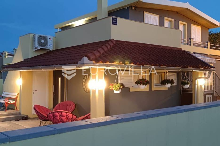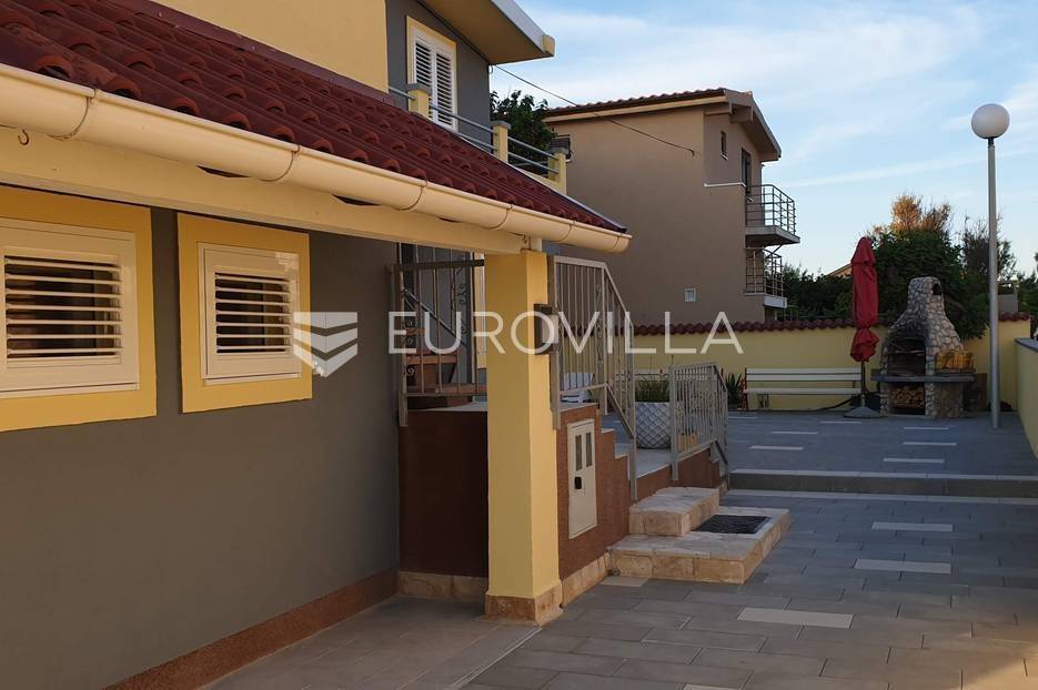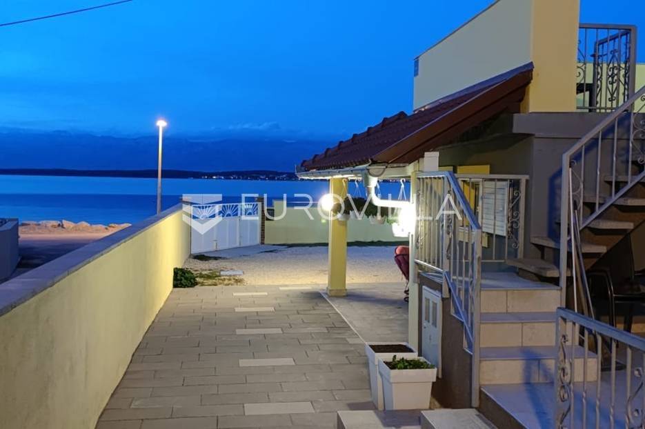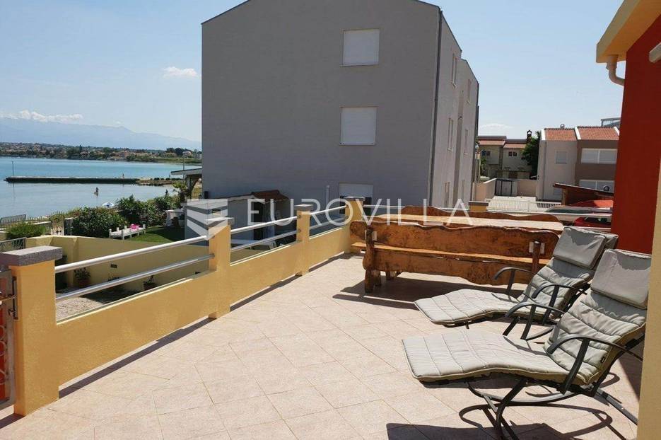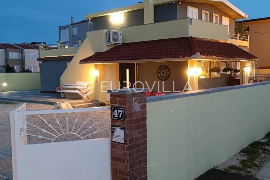 Nin, Ždrijac, prekrasna apartmanska vila ukupne površine 240 m2 na parceli 613 m2 udaljena samo 5 metara od mora s prekrasnim pogledom.Vila je izgrađena na dvije etaže i sastoji od četiri apartmanskih jedinica. Svi apartmani su potpuno opremljeni, namješteni i klimatizirani. Veliki predivan vrt s roštiljom i natkrivenom terasom. Osigurano 6 parkirnih mjesta. Pripada joj i privatni vez za brodice u neposrednoj blizini. Nalazi se u mirnoj ulici, pedesetak metara od restorana, šetnice, ostalih sadržaja samo 10 minuta laganog hoda od stare jezgre Nina. Upravo je u izgradnji nova terasa i sjenica. Postoji mogućnost dizanja još jedne etaže i postavljanje bazena u dvorištu vile.Nin je gradić smješten oko 15 km sjeverozapadno od Zadra. Centar drevnog grada je otočić, promjera 500 m, povezan s kopnom dvama mostovima, nastao na pješčanom sprudu nekadašnjeg ušća rječice Miljašić Jaruge u more. Sa sjeverne strane okružen je pješčanim sprudom i naseljem Ždrijac koju ima jednu od rijetkih prirodnih pješčanih plaža u HrvatskojOstale informacije na upit.... Više na eurovilla.hr, ID: 569983