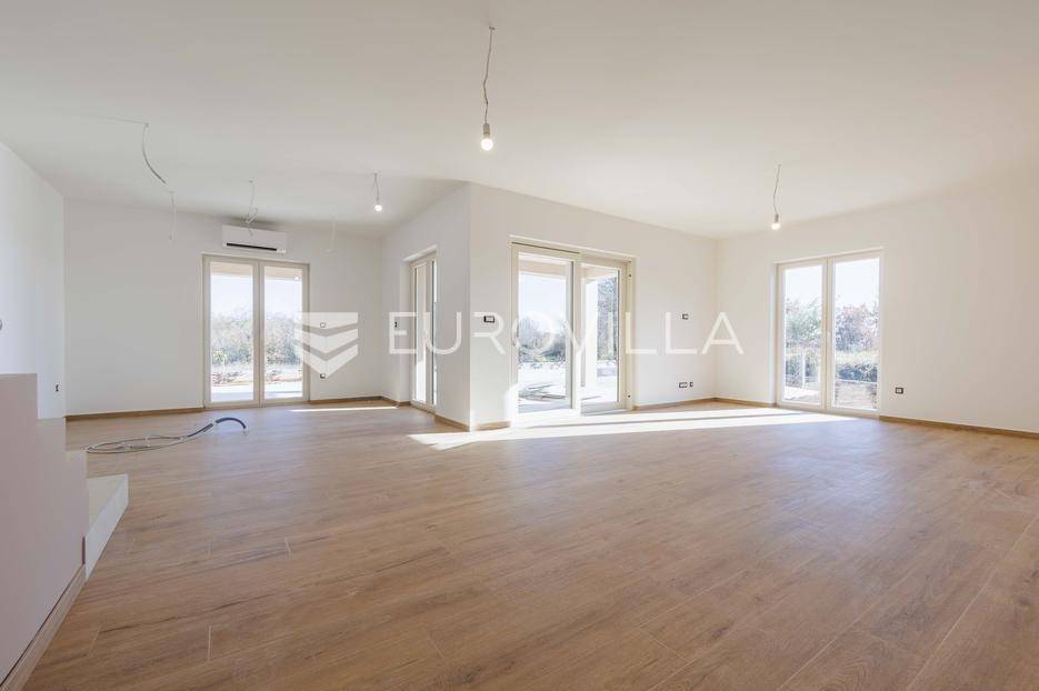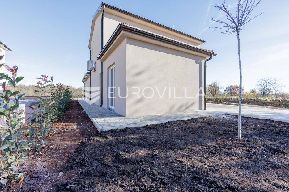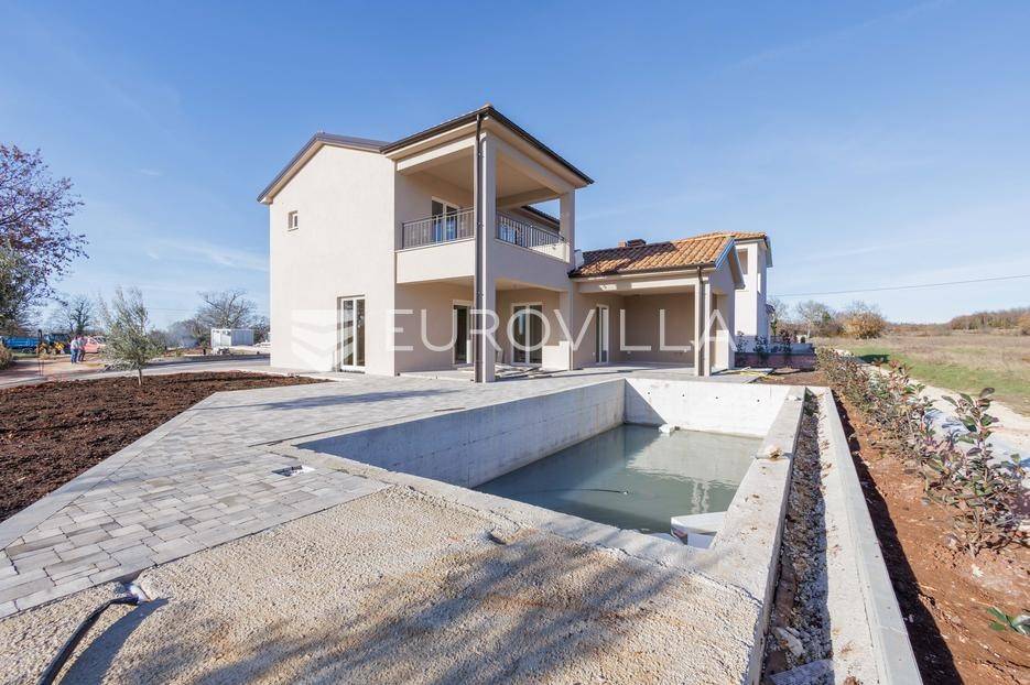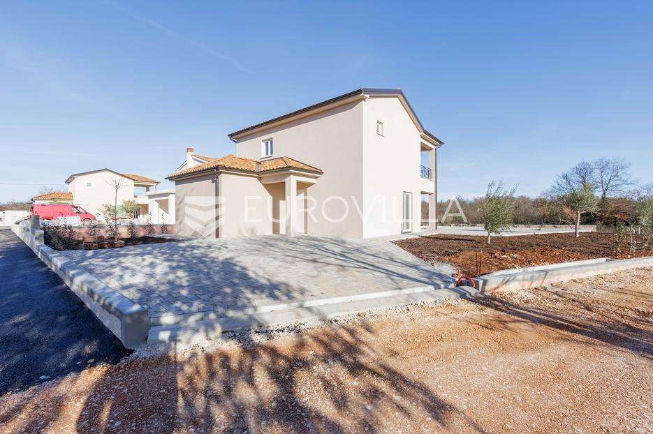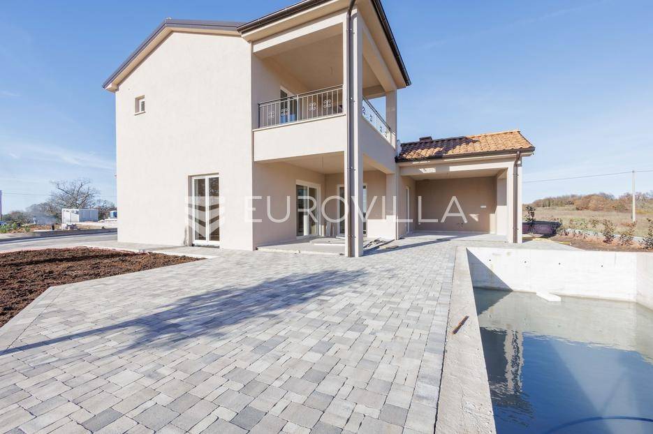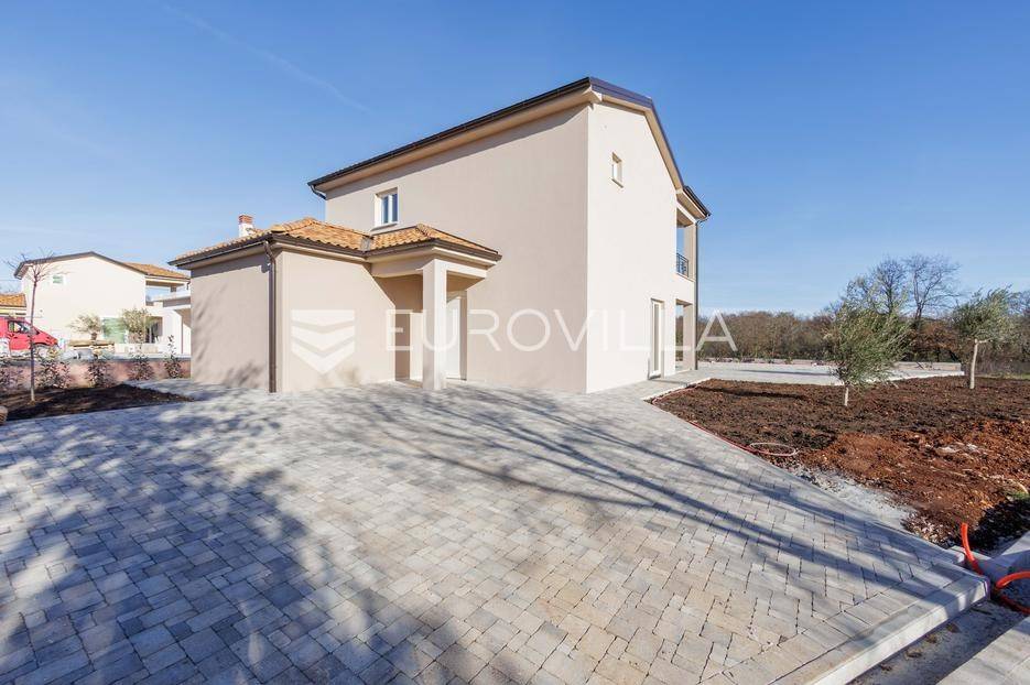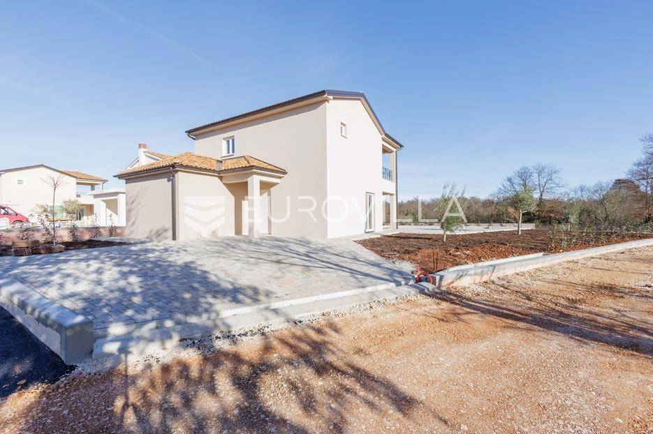 Vila se nalazi unutar privatnog kompleksa od samo pet modernih vila, pružajući mir, sigurnost i potpuni komfor.Ova elegantna nekretnina prostire se na dvije etaže od ukupno 170,42 m2 pažljivo osmišljenog prostora.Već pri samom ulazu dočekat će vas prostran, sunčano osvijetljen dnevni boravak koji odiše toplinom i udobnošću, a spojen je s prostorom predviđenim za modernu kuhinju i blagovaonicu. Na ulaznoj etaži smještena je i prva od ukupno tri kupaonice te spavaća soba.Iz dnevnog boravka i kuhinje izlazi se na dvije natkrivene terase — idealne za jutarnju kavu ili večernje opuštanje. S terasa se pruža prekrasan pogled na bazen, zelenilo i obližnji vinograd, što ovom domu daje poseban mediteranski šarm.Na katu se nalaze dvije prostrane spavaće sobe, svaka s vlastitom kupaonicom. Jedna soba ima praktičnu walk-in garderobu, dok druga nudi izlaz na natkrivenu terasu s otvorenim pogledom na prirodu.Grijanje i hlađenje tijekom cijele godine osigurano je inverter klima uređajima.U cijenu su uključeni ograđeni posjed, uređeni okoliš te asfaltiranje dijela pristupne ceste unutar naselja s privatnom kapijom, što dodatno naglašava sigurnost kompleksa.Za više informacija slobodno nas kontaktirajte.... Više na eurovilla.hr, ID: 644114
