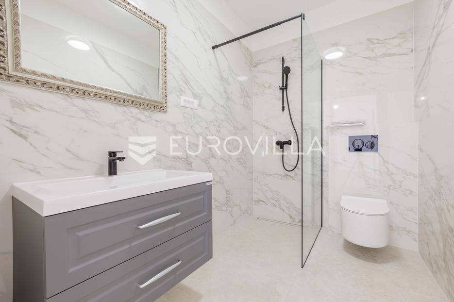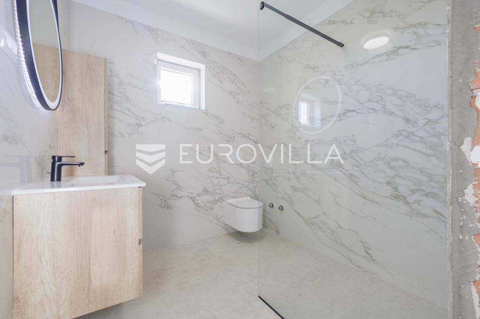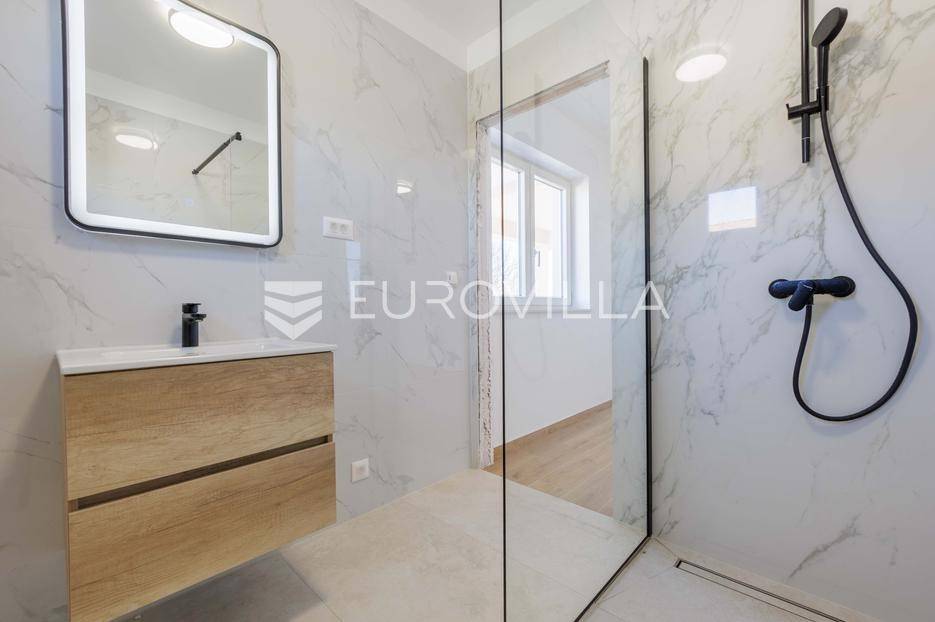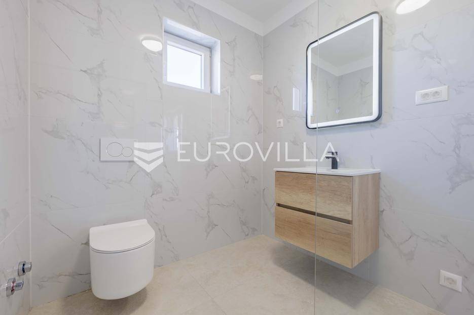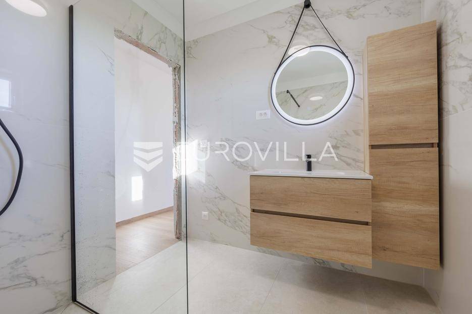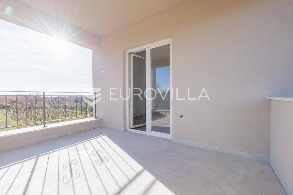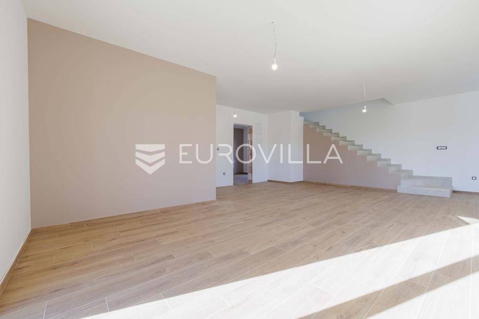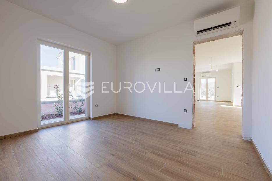 Vila se nalazi unutar privatnog kompleksa od samo pet modernih vila, pružajući mir, sigurnost i potpuni komfor.Ova elegantna nekretnina prostire se na dvije etaže od ukupno 170,42 m2 pažljivo osmišljenog prostora.Već pri samom ulazu dočekat će vas prostran, sunčano osvijetljen dnevni boravak koji odiše toplinom i udobnošću, a spojen je s prostorom predviđenim za modernu kuhinju i blagovaonicu. Na ulaznoj etaži smještena je i prva od ukupno tri kupaonice te spavaća soba.Iz dnevnog boravka i kuhinje izlazi se na dvije natkrivene terase — idealne za jutarnju kavu ili večernje opuštanje. S terasa se pruža prekrasan pogled na bazen, zelenilo i obližnji vinograd, što ovom domu daje poseban mediteranski šarm.Na katu se nalaze dvije prostrane spavaće sobe, svaka s vlastitom kupaonicom. Jedna soba ima praktičnu walk-in garderobu, dok druga nudi izlaz na natkrivenu terasu s otvorenim pogledom na prirodu.Grijanje i hlađenje tijekom cijele godine osigurano je inverter klima uređajima.U cijenu su uključeni ograđeni posjed, uređeni okoliš te asfaltiranje dijela pristupne ceste unutar naselja s privatnom kapijom, što dodatno naglašava sigurnost kompleksa.Za više informacija slobodno nas kontaktirajte.... Više na eurovilla.hr, ID: 644114