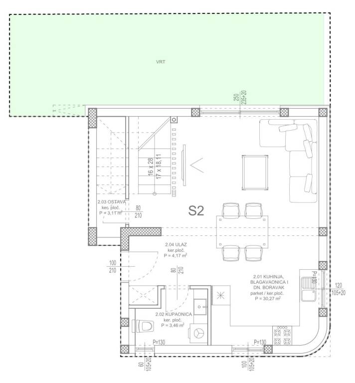 U prodaji je moderan dvoetažni stan s vrtom S2, smješten u mirnom i atraktivnom dijelu Kožina kraj Zadra, na svega 200 metara od mora. Nekretnina se nalazi na izvrsnoj lokaciji, idealnoj za obiteljski život, odmor ili kao investicija za turistički najam, uz brzu povezanost s gradom Zadrom i svim važnim sadržajima.Stan je raspoređen na dvije etaže. U prizemlju se nalazi prostrani dnevni boravak s kuhinjom i blagovaonicom, ostava, kupaonica te hodnik. Na prvom katu smještene su dvije spavaće sobe, svaka s vlastitom kupaonicom, dok glavna, master spavaća soba ima i vlastitu garderobu. Uz stan dolazi vrt površine 28 m², idealan za boravak na otvorenom.Stanu pripadaju dva vanjska parkirna mjesta, uključena u cijenu.Zgrada se gradi prema visokim standardima kvalitete. Planirani rok useljenja je kraj 2026. godine, a energetski razred objekta je A+. Fasada je izvedena s ETICS toplinskom izolacijom debljine 10 cm. Grijanje i hlađenje osigurano je putem Mitsubishi Heavy Industries klima uređaja, uz električno podno grijanje. Vanjska stolarija je aluminijska s troslojnim IZO staklom. Sanitarna oprema predviđena je renomiranih proizvođača LAUFEN, HANSGROHE i GEBERIT, dok su keramičke pločice talijanske proizvodnje, prve klase. Unutarnja vrata su bijela, lakirana, s ispunom od cjevaste iverice, a ulazna vrata protuprovalna, protupožarna i zvučno izolirana. Ugrađen je i videoportafon za dodatnu sigurnost. U zgradi je predviđeno dizalo Schindler (za stan S4).Ova nekretnina predstavlja izvrsnu priliku za kupnju kvalitetnog dvoetažnog stana s vrtom na jednoj od traženijih lokacija u okolici Zadra.Za više informacija i dogovor oko razgledavanja, slobodno nas kontaktirajte s povjerenjem.... Više na eurovilla.hr, ID: 654714