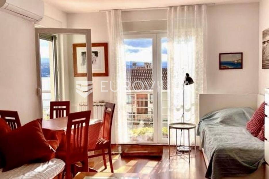 Na jednoj od najtraženijih lokacija u Opatiji prodaje se stan smješten na prvom katu vrhunski građene stambene zgrade novije gradnje s liftom.Stan ukupne površine 47 m2 sastoji se od hodnika, kupaonice, sobe, open space kuhinje s dnevnim boravkom i izlazom na lođu. S lođe se pruža predivan otvoreni pogled na more i Učku.Južne je orijentacije, funkcionalnog rasporeda te se prodaje namješten. Pripada mu spremište u prizemlju zgrade i vanjsko parkirno mjesto.Mirna slijepa ulica okružena zelenilom na pješačkoj udaljenosti od poznate opatijske šetnice Lungomare, korak do planinarske staze Učka, a opet u blizini svih sadržaja potrebnih za komforan obiteljski život ili odmor - vrtić, škola, trgovine, butike, restorani, Thalasso Wellness centar i Thalassotherapia Opatija.Idealna nekretnina za obiteljski život, odmor ili investiciju!Za ostale informacije slobodno nam se obratite.... Više na eurovilla.hr, ID: 717074