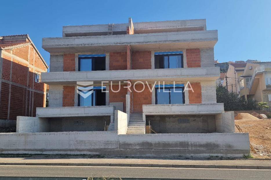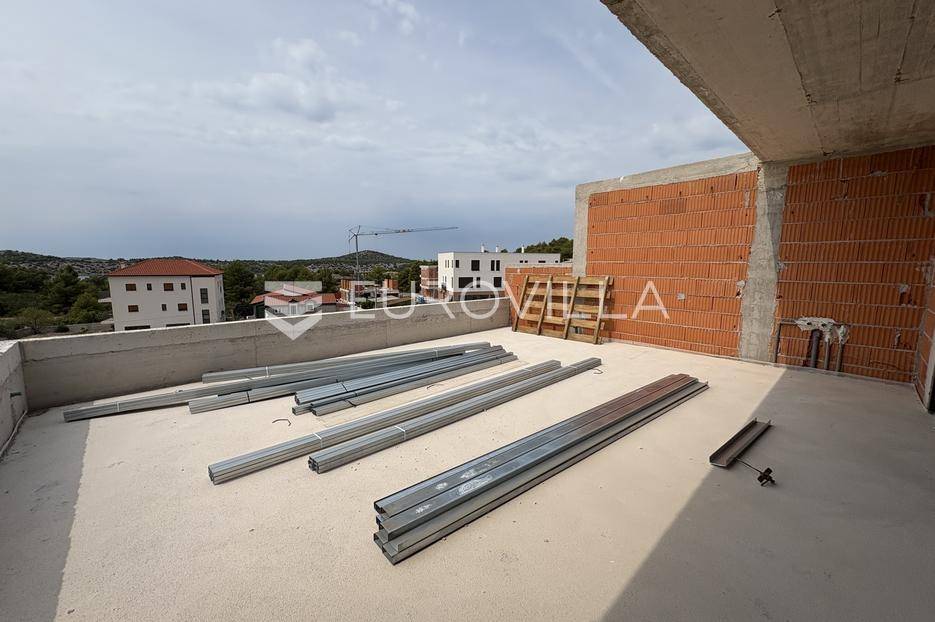 Šibenik, Crnica, NOVOGRADNJA, trosoban, dvoetažan stan neto korisne površine 166,34 m². Stan se nalazi na prvom i drugom katu moderne zgrade na odličnoj lokaciji. Pripadaju mu dva parkirna mjesta pored zgrade. Površina zatvorenog prostora je 140,76 m², površina terase je 39,51 m², te površina balkona je 5,82 m².Stan se sastoji od prvog kata na kojem su tri spavaće sobe, od kojih master soba ima privatnu kupaonicu, walk-in ormar te izlaz na balkon. Uz to na prvom katu nalazi se još jedna zasebna kupaonica. Unutarnjim stepenicama dolazi se na drugi kat gdje su dnevni boravk s kuhinjom i blagovaonicom i WC. Iz boravka izlazi se na veliku terasu s pogledom na more. U stan su ugrađeni klima uređaji, te je postavljena vrhunska toplinska i zvučna izolacija, te velike staklene stijene s troslojnim staklom.Zgrada ukupno ima 4 stana i nalazi se 350 metara od mora. Lokacija je odlična, u blizini centra grada, te u blizini plaže Banj. Zgrada je trenutno u izgradnji, te je planirani završetak proljeće 2026. godine.Za sve ostale informacije stojimo na raspolaganju.... Više na eurovilla.hr, ID: 755212