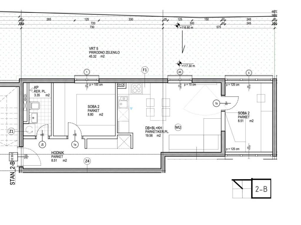 Prodaje se trosobanstan površine60,06 m2 u visokom prizemlju novogradnje s liftom. Ova moderna boutique zgrada ima 16 stanova na tri etaže, a nalazi se na Karlovačkoj cesti u neposrednoj blizini Arene Zagreb. Prednost lokacije je blizina škole, vrtića, javnog prijevoza i svih ostalih sadržaja bitnih za kvalitetan i ugodan život. Odličan izbor za obiteljski život ili investiciju. Stan 2-B sastoji se od dnevnog boravka s blagovaonicom i kuhinjom, 2 spavaće sobe, kupaonice, hodnika i vrta. Planirani datum useljenja: kraj 2026.