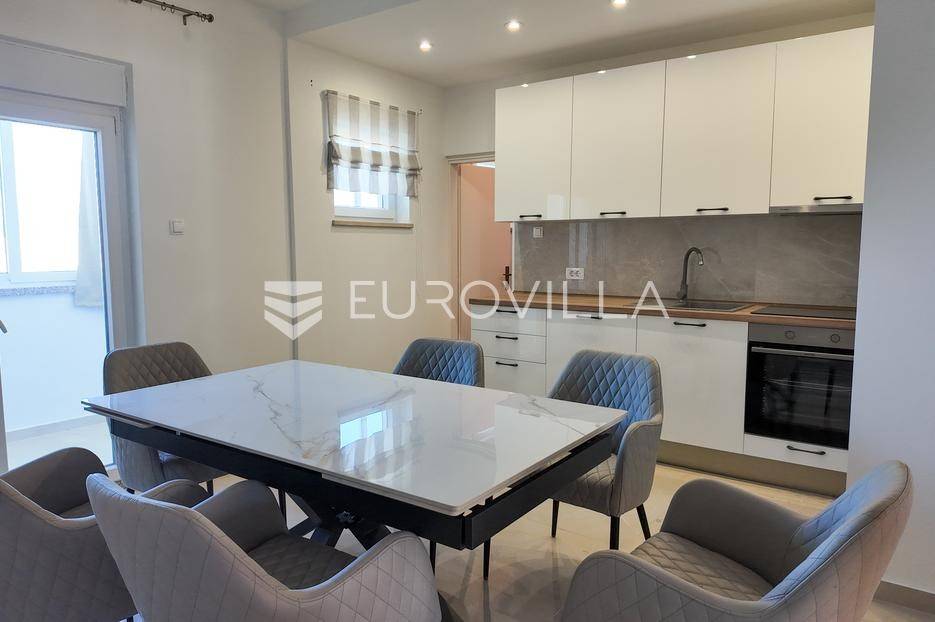 Metković, Opuzenska ulica, namješten, dvosoban stan od 80 m2.Prekrasan, prostran stan na drugom katu stambene zgrade u kojoj se nalaze 4 stambene jedinice.Stan se sastoji od hodnika, toaleta, kupaonice, ostave s pomoćnom kuhinjom, dvije sobe, dnevnog boravka sa blagavaonicom i kuhinjom sa pripadajućom lođom površine 9m2 koja je ujedno i zimska terasa te je zatvorena kliznom PVC stolarijiom a ukupno neto korisne površine površine od 80 m2.Stan je kompletno renoviran, obojen, kupaonski namještaj najviše klase potpuno nekorišten, kuhinja potpuno nova, kao i električne instalacije. Podovi u stanu su kombinacija parketa i pločica visoke kvalitete. Ispred stambene jedince osiguran je parkirno mjesto.Grijanje i hlađenje u stanu je rješeno klimatizacijom, dok postoji i mogućnost ugradnje dizalice topline, s obzirom da su već instalirani radijatori u svim prostorijama.Stan je smješten u blizini svih potrebnih sadržaja, škole, vrtića, trgovine dok se šetnjom dolazi do samog centra Metkovića za 10-tak min.Za više info stojimo na raspolaganju.... Više na eurovilla.hr, ID: 827989