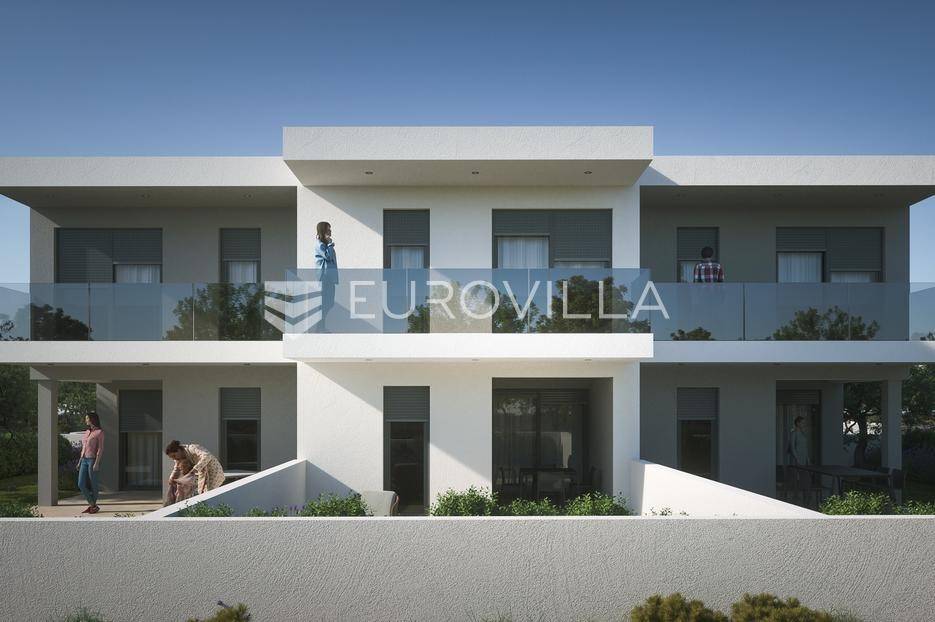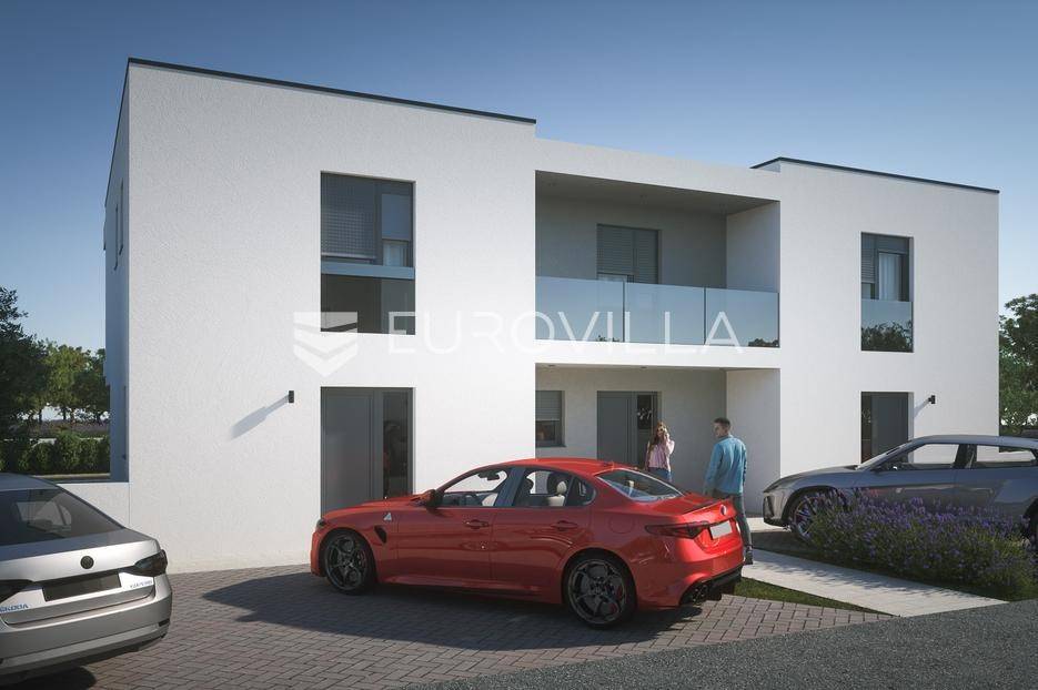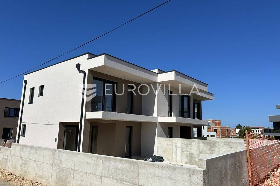 Zadar, Vrsi, dvoetažna kuća u nizu na izvrsnoj lokaciji u predjelu Mulo, ukupne površine 103,64 m2.Prizemlje se sastoji od ulaznog prostora, dnevnog boravka, kuhinje i blagovaonice, wc i terasa površine 14,90 m2.Unutarnjim stubištem dolazi se na kat koji se sastoji od hodnika, 3 spavaće sobe, kupaonice i loggie.Oprema:- sustav grijanja i hlađenja putem Mitsubishi klime sa Wifi modulom u svakoj prostoriji te podno električno u kupaonicama- stolarija: PVC dvoslojna sa ClimaGuard staklom i RAL ugradnjom - keramika u cijelom objektu - Marazzi Ragno - Geberit ugradbeni kotlići, Hansgrohe ugradbeni podžbukni tuševi, Villeroy&Boch WC školjke - Sto ETICS fasadni sustav 12 cm, ravni krov 15 cm izolacije pokriven batudom - Lip Bled unutarnja vrata sa skrivenim pantama i Hoppe magnetnim bravama - aluminijski opšavi i lim - staklene ograde na terasamaKući pripadaju dva parkinga mjesta te bazen.Više informacijana upit.... Više na eurovilla.hr, ID: 831223