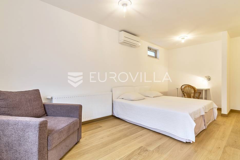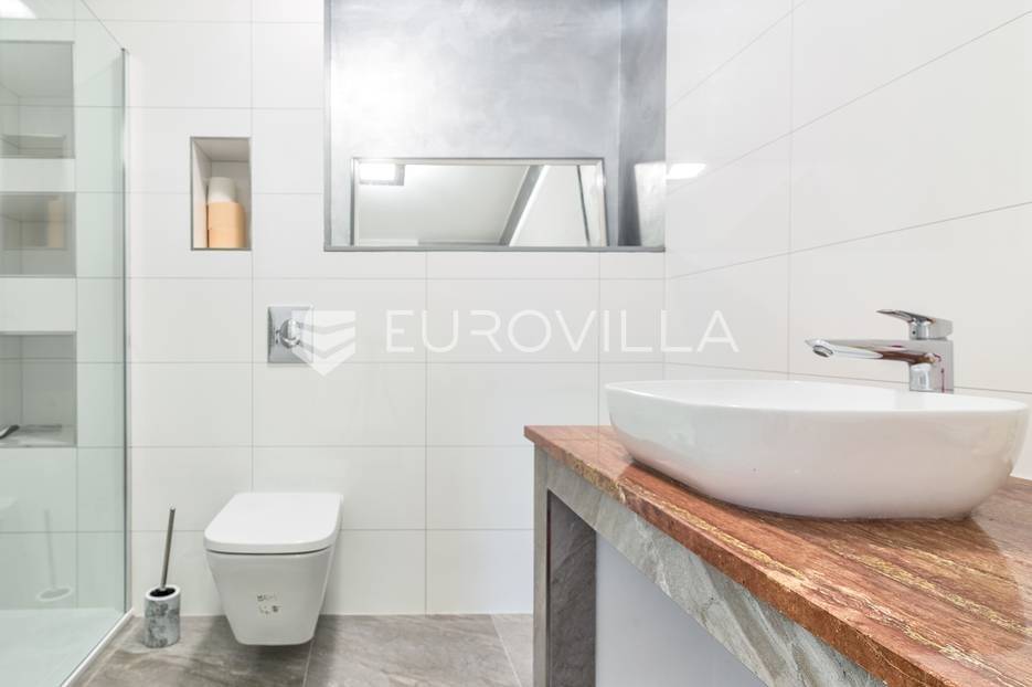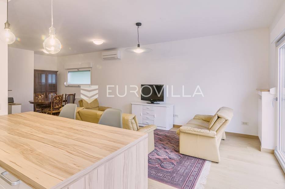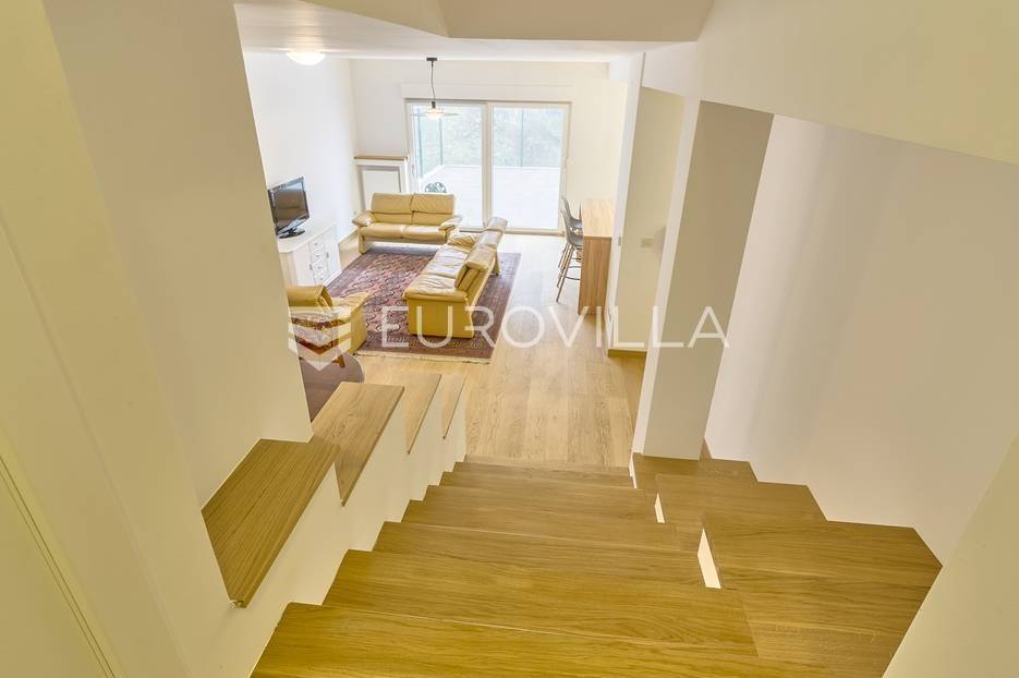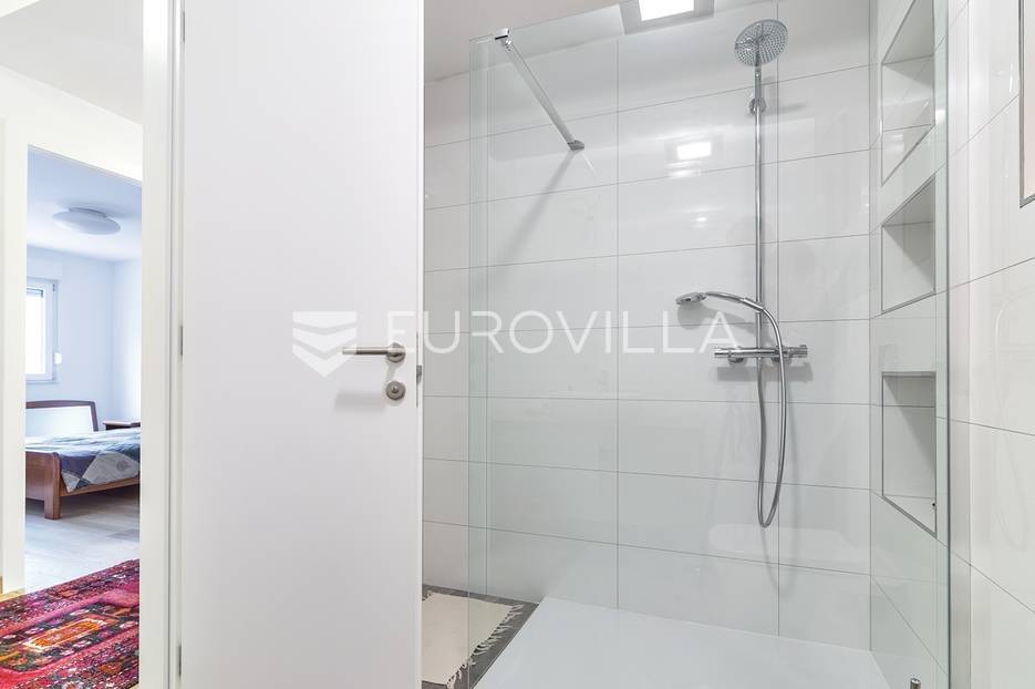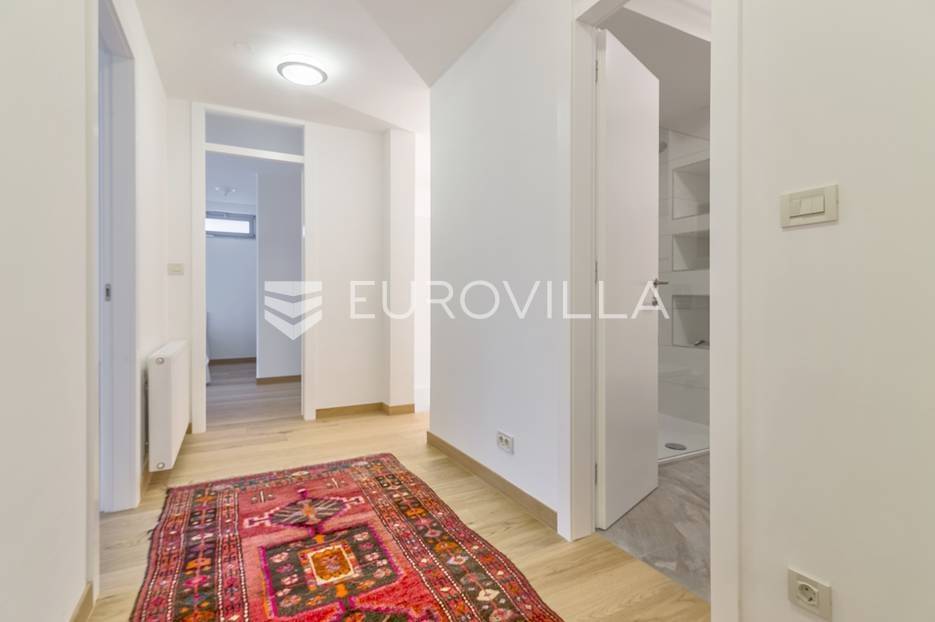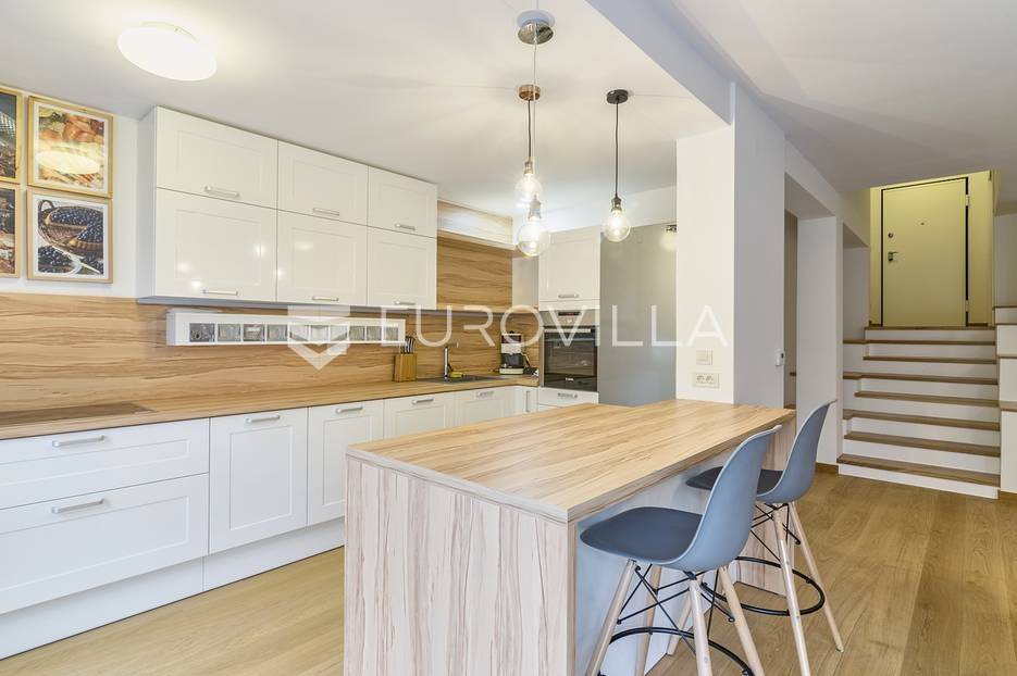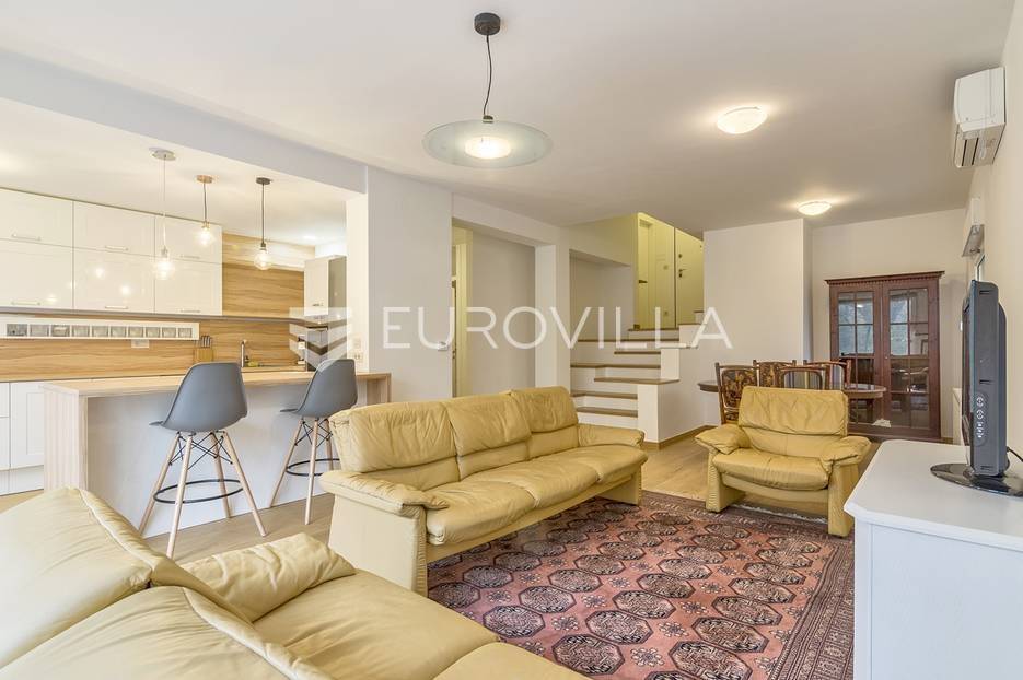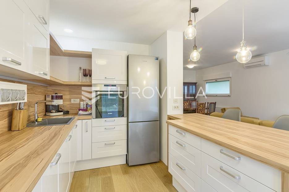 Šestinski vrh, novija gradnja (2007), uređen i kompletno namješten trosoban stan 94m2 sa terasom i vrtom 170m2. Nalazi se u prizemlju zgrade, jedini na etaži. Pripadaju mu 2 natkrivena parkirna mjesta ispred zgrade. Zgrada ima lift. Stan je kompletno adaptiran i novo namješten 2018 god. Etažno plinsko grijanje, klimatiziran, stolarija alu-drvo sa troslojnim staklima i komarnicima, hrastov parket. Energetski certifikat B. Visina stropa 267cm. Orijentacija jugoistok.Ulazni hodnik, garderoba/vešeraj, wc, boravak s kuhinjom i blagovaonicom, kupaonica s tušem, 2 spavaće sobe. Iz stana se direktno ulazi u suterenski prostor površine cca. 40-50 m2 koji je uređen i namješten te ima veliku garderobu. Stanu pripada velika terasa i vrt.... Više na eurovilla.hr, ID: 838713