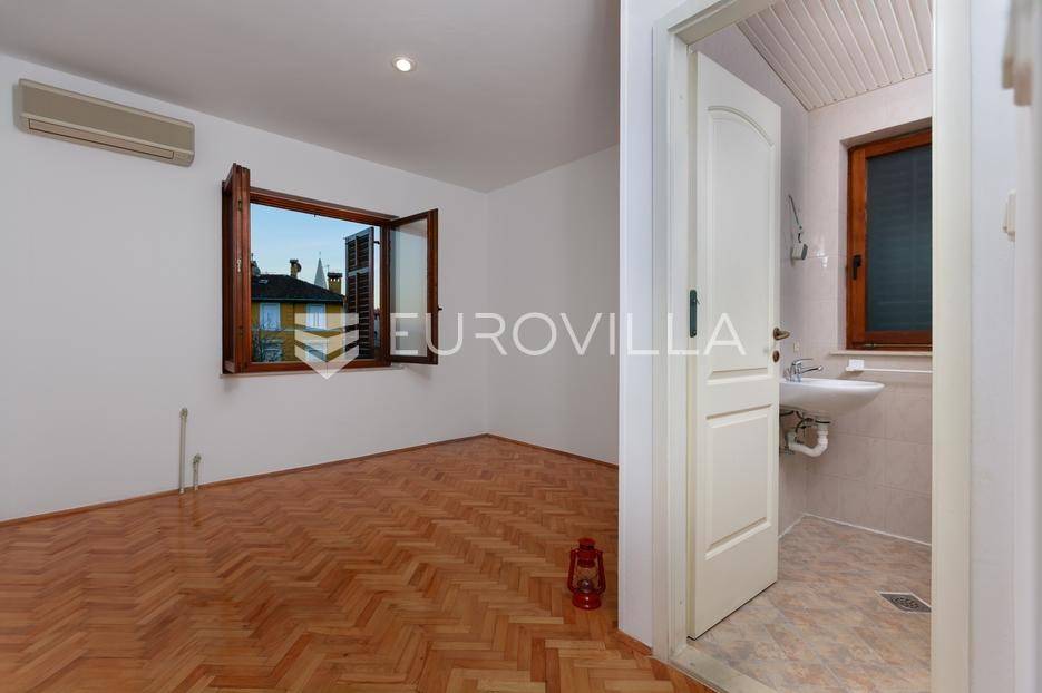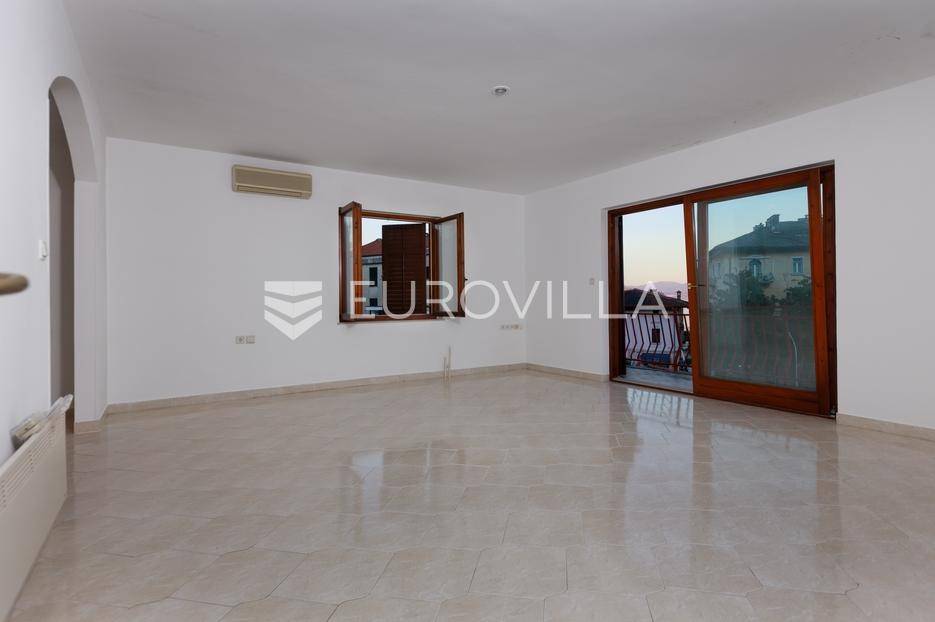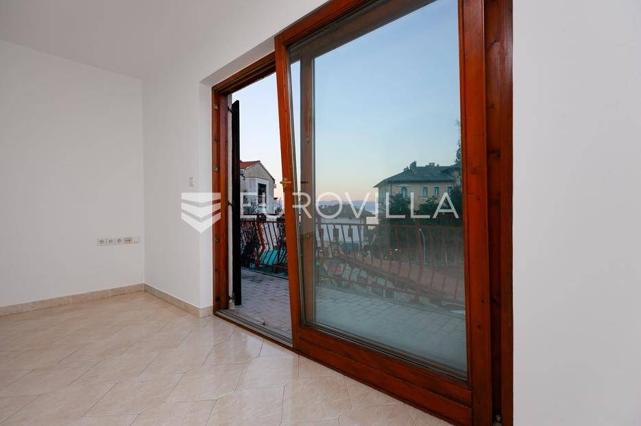 U samom centru Lovrana, na drugom katu kuće, nalazi se prostrani trosobni stan ukupne površine 109,92 m². Ova nekretnina predstavlja izvrsnu priliku za one koji traže dom u blizini svih važnih sadržaja, ali i za investitore koji žele iskoristiti turistički potencijal ovog atraktivnog obalnog mjesta.Stan ima promišljeno osmišljen raspored koji uključuje tri svijetle i prostrane spavaće sobe, dvije kupaonice, funkcionalnu kuhinju s blagovaonicom te prostrani dnevni boravak iz kojeg se izlazi na balkon južne orijentacije, s kojeg se pruža prekrasan pogled na more. Tu su i ulazni hodnik koji povezuje sve prostorije te dodatna ostava koja pruža praktičan prostor za pohranu.Zahvaljujući južnoj orijentaciji, stan je tijekom cijelog dana obasjan prirodnim svjetlom, stvarajući ugodnu i toplu atmosferu. Iako se prodaje nenamješten, upravo to kupcima ostavlja mogućnost da ga urede prema vlastitom ukusu i pretvore u savršen dom ili atraktivan turistički apartman.Lokacija u samom centru Lovrana pruža neposrednu blizinu trgovina, škole, restorana, kafića i poznate šetnice uz more. Istovremeno, stan se nalazi u mirnijem dijelu, što osigurava privatnost i komfor svakodnevnog života.Ova nekretnina predstavlja odličan spoj prostranosti, funkcionalnosti i izvrsne lokacije te je idealna za sve koji traže kvalitetan dom ili investiciju na obali.Za više informacija slobodno nas kontaktirajte.... Više na eurovilla.hr, ID: 859481