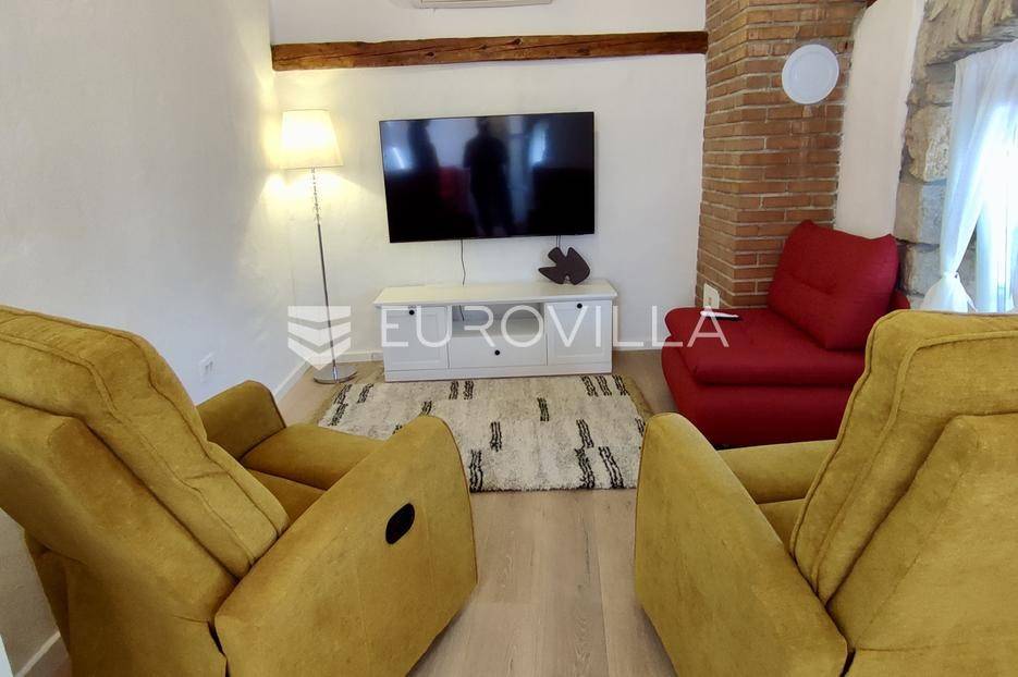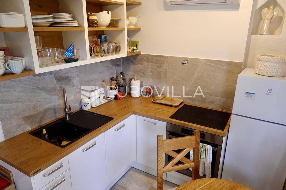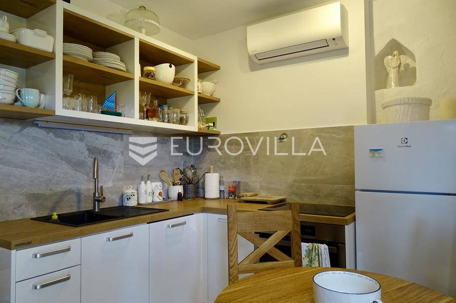 Potpuno rekonstruirana i opremljena kamena starina u nizu, smještena u samom centru povijesne jezgre Omišlja na otoku Krku. Nekretnina se prostire na tri etaže (P+2) i nalazi se svega 150 metara od mora i plaže, do koje vodi kameno stepenište.Kuća je u cijelosti adaptirana, namještena te odmah useljiva. Ukupna površina objekta iznosi 54 m², a prostor je osmišljen kao open space. Visoki stropovi dodatno naglašavaju osjećaj prozračnosti i ističu arhitektonsku ljepotu izvorne kamene konstrukcije.U prizemlju su smješteni kuhinja i sanitarni čvor, na prvom katu hodnik i spavaća soba, dok se na najvišoj etaži nalazi dnevni boravak s pogledom na more. S gornje etaže pruža se prekrasan pogled na Kvarnerski zaljev, grad Rijeku i planinu Učku.Kuća se prodaje potpuno namještena. U neposrednoj blizini nalaze se trgovine, restorani, parking, ambulanta, ljekarna, osnovna škola i autobusna stanica, što ovu nekretninu čini idealnom za odmor ili kao investiciju za turistički najam.Za detaljnije informacije slobodno nas kontaktirajte.... Više na eurovilla.hr, ID: 869742