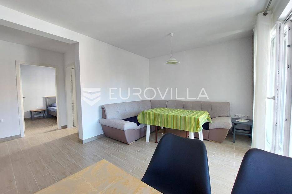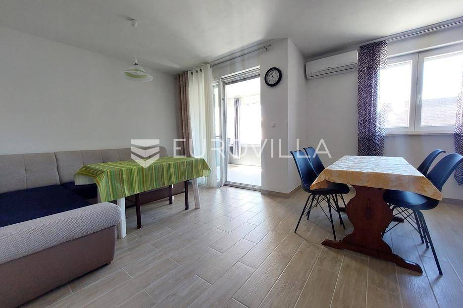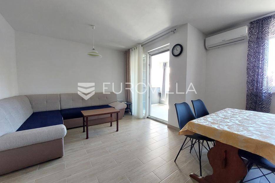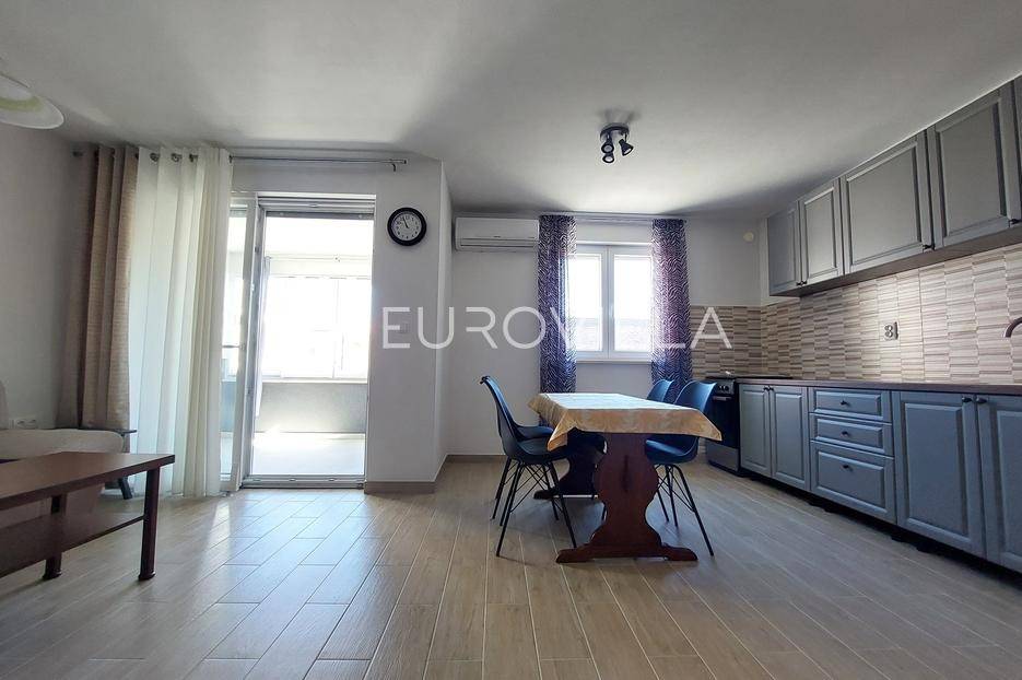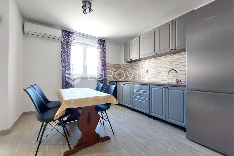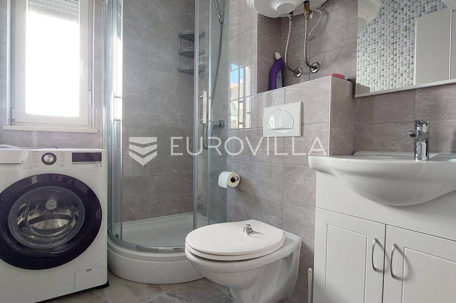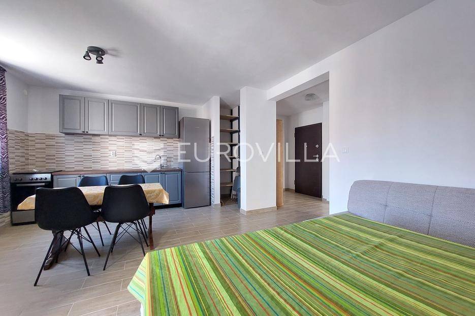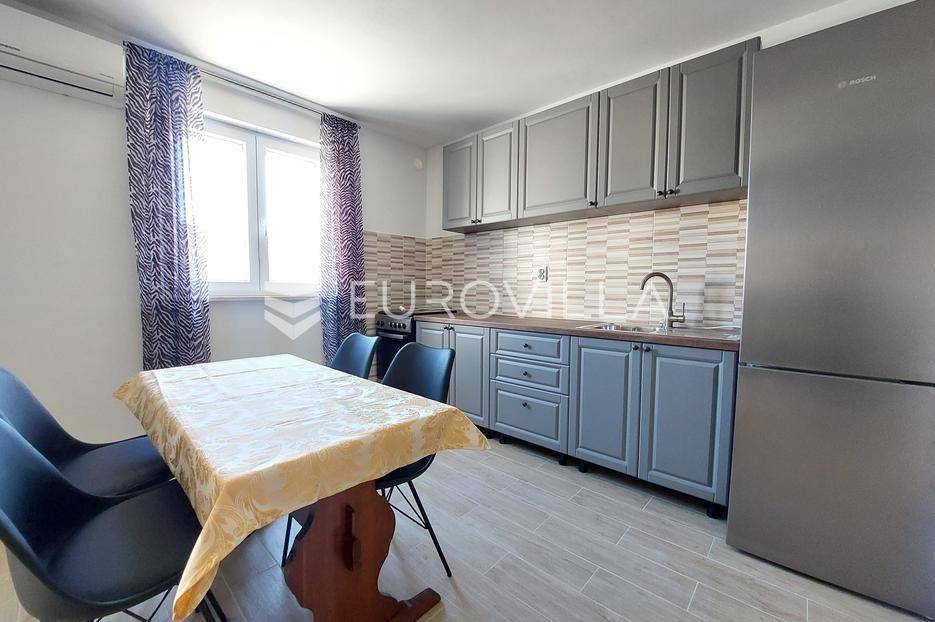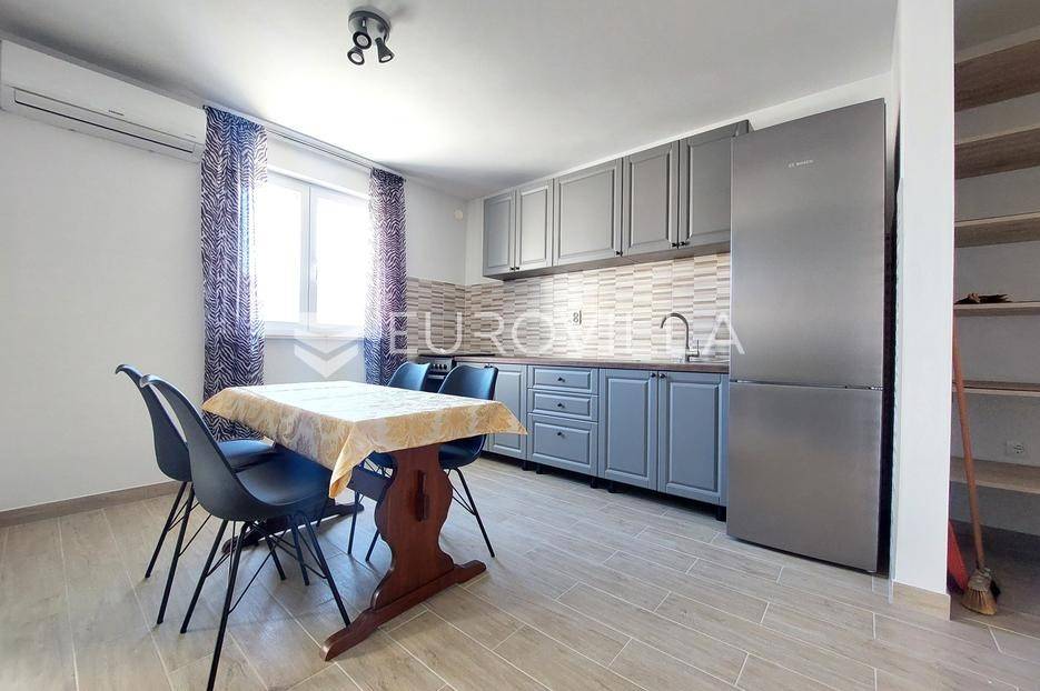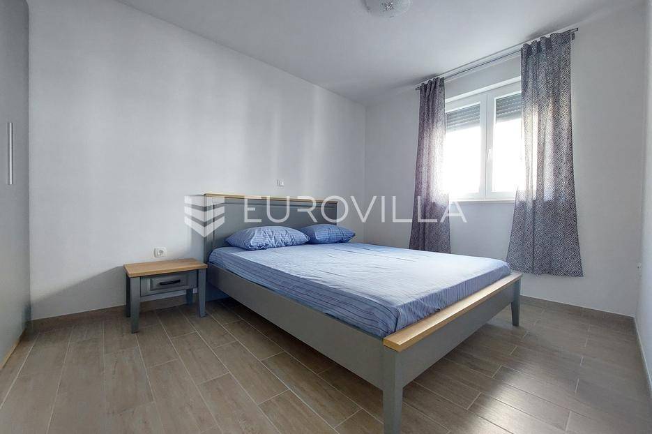 Na prodaju je moderno opremljen stan u novoj zgradi, smješten na odličnoj lokaciji koja osigurava miran ambijent.Stan se nalazi na prvom katu novogradnje i sastoji se od ulaznog hodnika, prostranog dnevnog boravka s kuhinjom i blagovaonom te izlazom na zatvorenu terasu. Tu je i jedna velika spavaća soba te kupaonica.Osim klima uređaja, stan ima opciju grijanja putem peći na drva ili pelete. Uz stan dolazi vlastito parkirno mjesto, kao i spremište u podrumu zgrade.Zgrada u kojoj se stan nalazi sadrži 13 stambenih jedinica, a od mora je udaljena svega 800 metara. Svi kućanski aparati i namještaj su novi i prodaju se sa stanom.Za sva dodatna pitanja, potrebne informacije ili želju za organizacijom razgleda stana i njegova lokacija, budite slobodni i kontaktirajte nas u svakome trenutku.... Više na eurovilla.hr, ID: 884292
