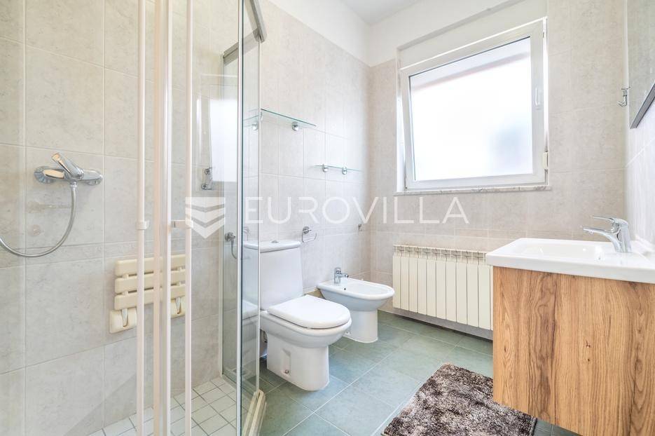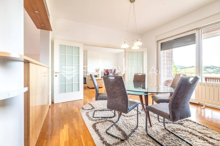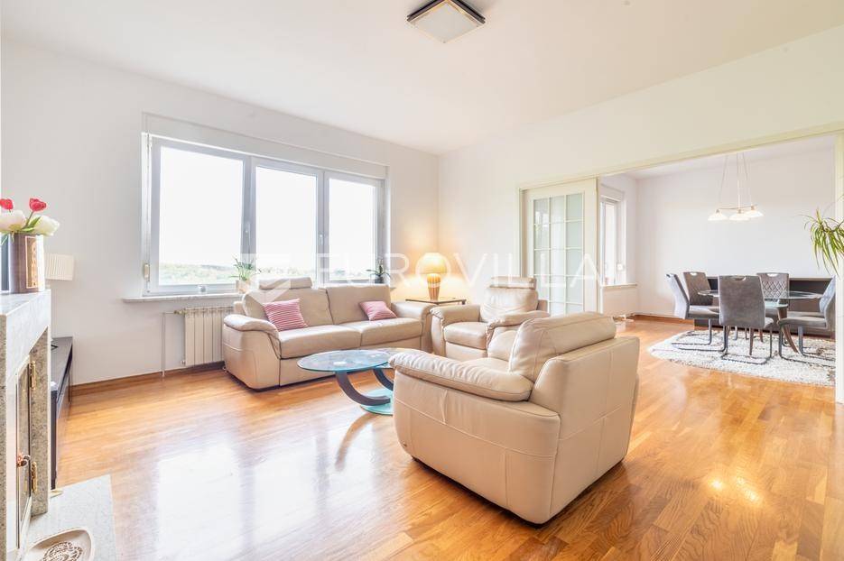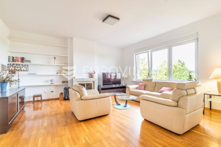 Zagreb, Gornje Prekrižje, luksuzan četverosoban stan, 160 m2 smješten u reprezentativnoj urbanoj vili novije gradnje koja broji svega četiri stambene jedinice.Sastoji se od ulaznog hodnika, prostranog dnevnog boravka s kuhinjom, blagovaonicom te izlazom na terasu koja pruža predivan pogled na zelenilo, tri spavaće sobe od kojih svaka ima izlaz na balkon, dvije moderno uređene kupaonice, gostinjskog toaleta, vešeraja te saune. Zbog orijentacije na sve četiri strane svijeta, stan je izuzetno svijetao tijekom cijelog dana.Postavljeni su novi kuhinjski elementi i kupaonski ormarići, novi blagovaonski stolci, luksuzne Natuzzi sofe s relax mehanizmima te kamin koji se redovito održava.Stanu pripada garaža i jedno vanjsko parkirno mjesto.Od tehničkih specifikacija ističu se etažno plinsko grijanje, klimatizacija i videoportafon.Posebna prednost ove nekretnine je njezina lokacija - elitna, tiha i sigurna rezidencijalna četvrt u neposrednoj blizini brojnih veleposlanstava, idealna za sve koji traže visoki životni standard.Za dodatna pitanja stojimo na raspolaganju.... Više na eurovilla.hr, ID: 930397