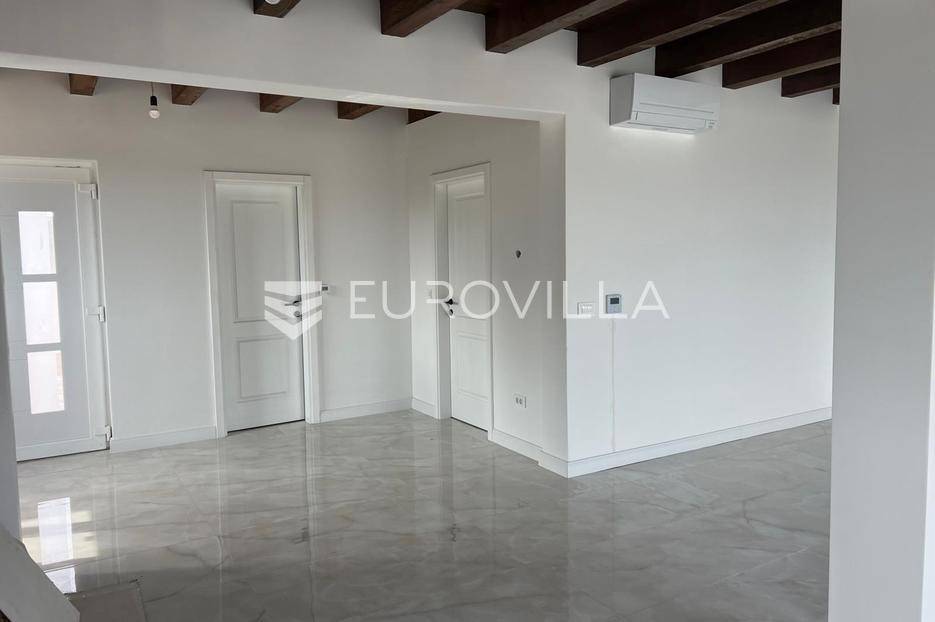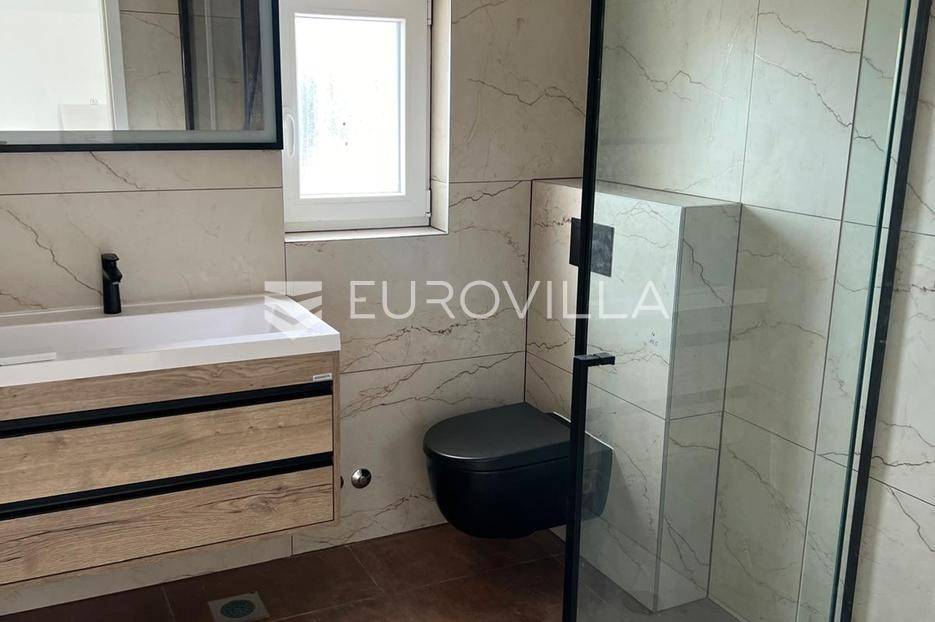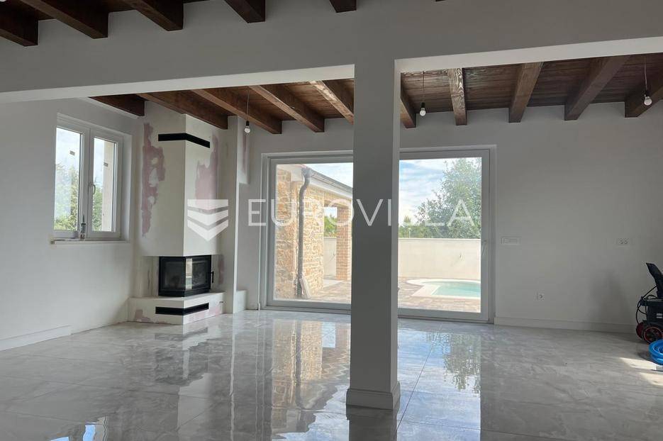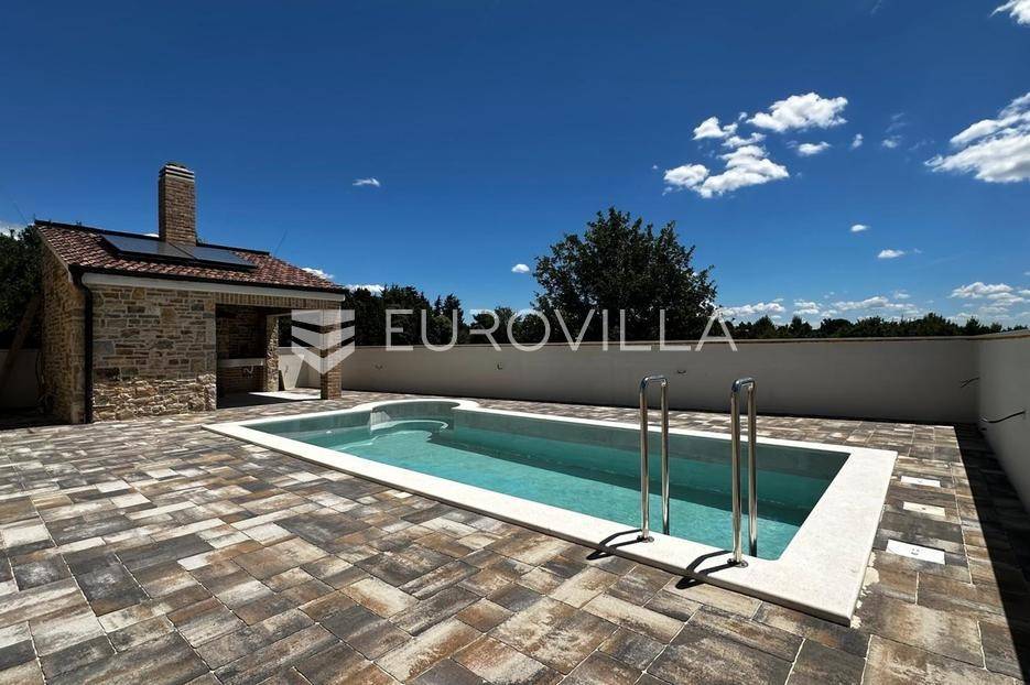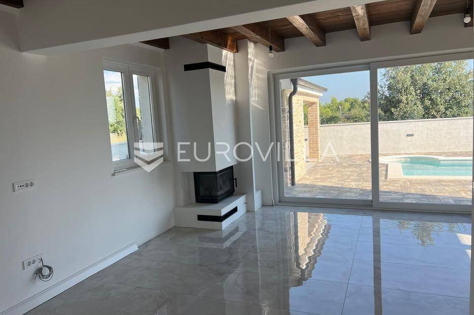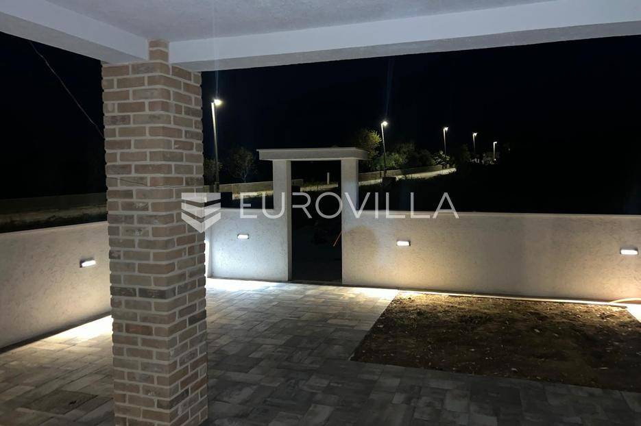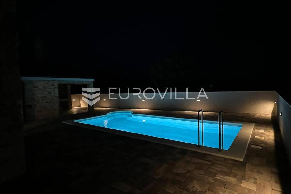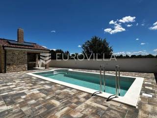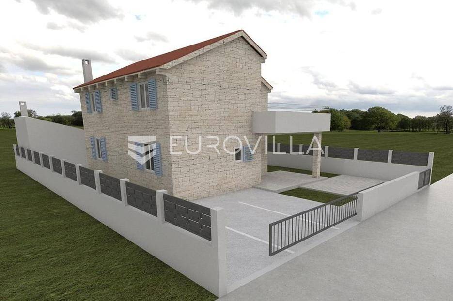Zadar, Vrsi, novoizgrađena prekrasna kamena kuća na izuzetno mirnoj lokaciji.Kuća površine 165m2, smještena je na zemljištu površine 394 m2, ima dvije etaže, vanjski bazen i okućnicu.U prizemlju, gdje s natkrivenog trijema ulazimo u kuću, nalazimo spavaću sobu i kupaonicu, kuhinju, blagovaonu i dnevni boravak otvorenog tlocrta iz kojeg izlazimo u veliko dvorište s bazenom.Na katu se nalaze dvije spavaće sobe sa zajedničkom kupaonicom, te prostrana soba (master bedroom) s en suite kupaonicom i izlazom na veliku terasu.U dvorištu se nalazi bazen površine 25,8m2, 8 m x 4 m, te pomoćni objekt u kojem je ljetna kuhinja s roštiljem, te bazenska tehnika. Na krovu su postavljeni solarni paneli kojima se grije bazen i kuća.Grijanje kuće se provodi putem dizalice topline. U dnevnom boravku je ugrađen i komin obložen kamenom, koji zimi daje toplinu i predivan ugođaj, a hlađenje se odvija klima uređajima koji se nalaze u svakoj prostoriji.Kuća je građena od visokokvalitetnih materijala, te se pazilo na sve detalje kako bi boravak u njoj bio maksimalno ugodan.Video nadzor je za dodatnu sigurnost, kuća je toplinski izolirana s Eps-om i kamenom oblogom od 3 cm. Stolarija na kući je pvc u predivnoj plavoj boji.Pokraj kuće nalaze se tri parkirna mjesta sa stanicom za punjenje električnih automobila.Iako je kuća smještena na mirnoj lokaciji, u blizini se nalaze svi sadržaji potrebni za ugodan život poput dućana, ljekarne, tržnice, kafića, restorana...Za sve dodatne informacije stojimo na raspolaganju.... Više na eurovilla.hr, ID: 939855