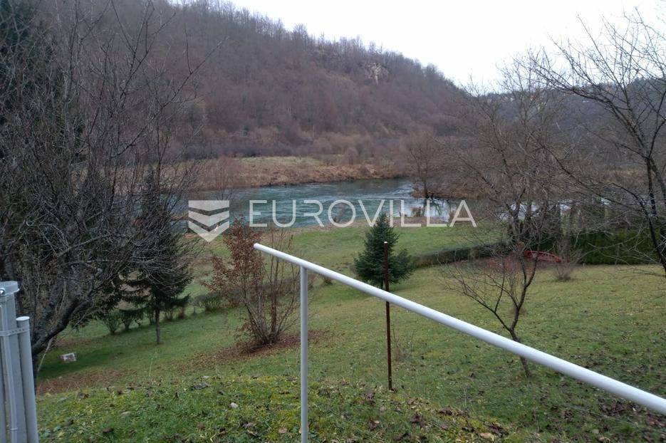 Slunj, Veljun, troetažna kuća 120 m2 na prekrasnoj lokaciji, okružena zelenilom do rijeke Korane.Nalazi se na parceli od 755 m2.Kuća ima 120 m2. 3 ulaza stoga se svaka etaža može pretvoriti u apartman. Sastoji se od dnevnog boravka, 2 spavaćih soba, kuhinje, blagovaonice, kupaonice s WC-om, 2 balkona i terase.Grijanje na drva, žbukana fasada. Podne obloge keramika i parket.Veljun kraj Slunja je malo naselje u Karlovačkoj županiji, smješteno svega nekoliko kilometara od Slunja, u mirnom i zelenom krajoliku središnje Hrvatske. Okružen je šumama, brežuljcima i krškim terenom, pa djeluje vrlo prirodno i nenametnuto. tipično ruralno mjesto - s raspršenim kućama, poljima i livadama, gdje se i danas osjeća sporiji, tradicionalniji način života. Blizina Rastoka, kao i rijeka Korane i Slunjčice, čini ga dobrim polazištem za ljubitelje prirode, šetnji i izleta.Za sva ostala pitanja stojim na raspolaganju.... Više na eurovilla.hr, ID: 940230