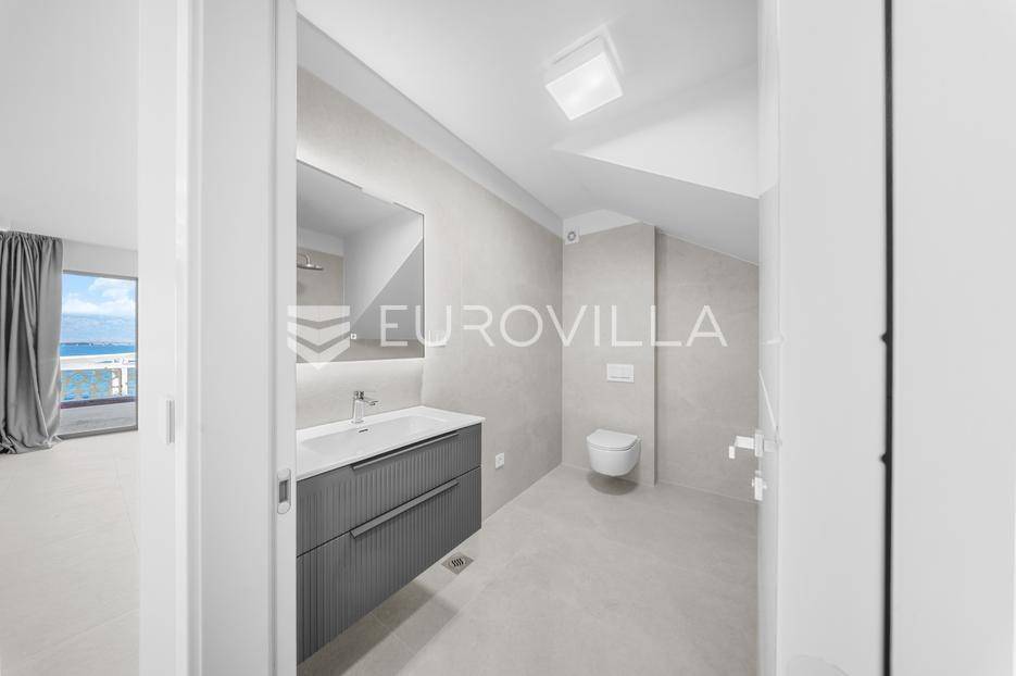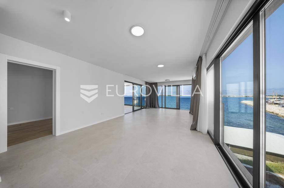 EKSKLUZIVNA NOVOGRADNJA U PRVOM REDU DO MORA - PRIVLAKAU ponudi je luksuzni projekt novogradnje smješten u Privlaci, atraktivnom turističkom mjestu u neposrednoj blizini Zadra. Privlaka je poznata po razvedenoj obali, brojnim pješčanim plažama i plitkom moru, što omogućuje dužu kupališnu sezonu u odnosu na većinu jadranskih destinacija. Riječ je o ugodnom dalmatinskom mjestu koje nudi idealan spoj mira, odmora i kvalitete života.Posebna vrijednost projekta je iznimna mikrolokacija. Zgrade su smještene u prvom redu do mora, na zapadnoj strani Privlake, uz uređenu obalnu šetnicu dugu čak 8 kilometara. Iz stanova se pružaju otvoreni panoramski pogledi na more, okolne otoke i impresivne zalaske sunca. Okruženje je mirno i uređeno, s modernom i luksuznom novogradnjom u neposrednoj blizini, što dodatno naglašava ekskluzivnost cijelog projekta.Projekt obuhvaća dvije stambene zgrade, od kojih svaka ima 9 stambenih jedinica raspoređenih na tri etaže. Lokacija omogućuje brz pristup centru mjesta i svim sadržajima potrebnima za ugodan boravak ili odmor, kao i nekoliko uređenih plaža u blizini.STAN S9 - 2. KAT - ZGRADA 1 - 112,70 m²Stan S9 smješten je na drugom katu stambene zgrade s ukupno 9 stanova raspoređenih na tri etaže. Ukupna neto korisna površina iznosi 112,70 m², dok bruto površina iznosi 128,14 m². Stan je jugozapadne orijentacije, što mu osigurava obilje prirodnog svjetla tijekom dana.Sastoji se od prostranog otvorenog prostora kuhinje, blagovaonice i dnevnog boravka (37,28 m²), tri spavaće sobe (12,15 m², 11,76 m² i 11,78 m²), hodnika (5,37 m²) te tri potpuno opremljene kupaonice (6,05 m², 5,22 m² i 4,28 m²). Dodatnu vrijednost stanu daje loggia površine 21,75 m², s koje se pruža otvoren pogled na more i otoke.Uz stan dolazi i jedno parkirno mjesto.KVALITETA GRADNJE I OPREMAPrilikom gradnje koriste se visokokvalitetni materijali renomiranih proizvođača, a stanovi su opremljeni suvremenom i luksuznom opremom, među kojom izdvajamo:armiranobetonsku konstrukcijutoplinsku izolaciju (stiropor) debljine 12 cmvrhunsku ALU troslojnu stolariju sa sustavima za zamračivanjepodne obloge od keramike visokog standarda (120 × 80 cm)podno grijanje u kupaonicama i dnevnom boravkuklimatizaciju u svim prostorijamai dodatnu opremu visoke kvaliteteStanovi su useljivi!.Kupac ne plaća porez na promet nekretnina.Za dodatne informacije i dogovor oko razgledavanja, slobodno nas kontaktirajte.... Više na eurovilla.hr, ID: 963390
