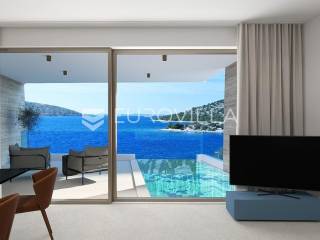 Grebaštica, luksuzan stan s bazenom i pogledom na more, neto korisne površine 91,33 m². Stan se nalazi na prvom katu moderne zgrade prvi red do mora. Pripada mu jedno parkirno mjesto u garaži, te ostava u podrumu. Površina zatvorenog prostora je 71,83 m², a površina terase je 17,05 m². Zgrada je opremljena dizalom.Stan se sastoji od dnevnog boravka s kuhinjom i blagovaonicom, dvije spavaće sobe od kojih jedna ima izlaz na balkon, kupaonice, WC-a, te prostrane terase s bazenom i pogledom na more. Svaka prostorija ima klima uređaj, te stan ima ugrađeno i podno grijanje.Zgrada se nalazi svega 40 metara od mora. Riječ je o luksuznom projektu koji se sastoji od dvije zgrade, s ukupno 9 stanova, gdje svaki stan ima privatan bazen.Za sve ostale informacije stojimo na raspolaganju.... Više na eurovilla.hr, ID: 973167
