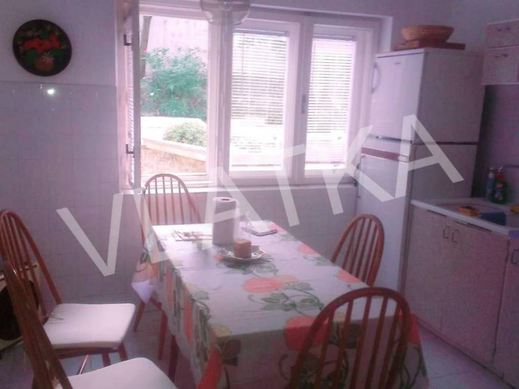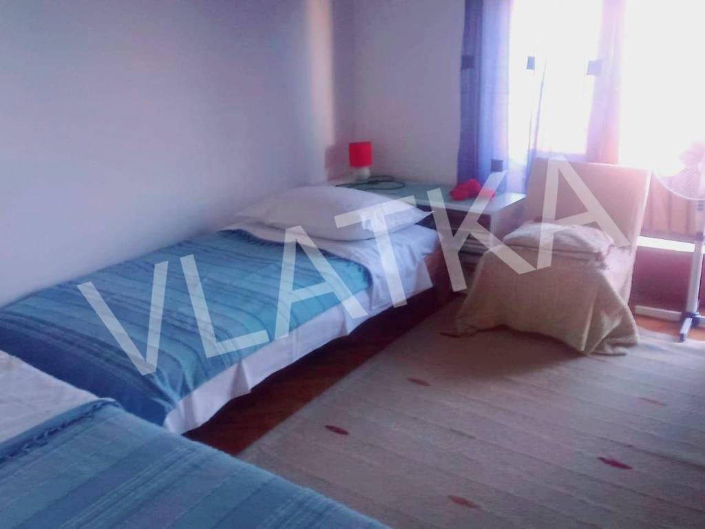 In vendita la metà di una casa (porzione di bifamiliare) con una superficie abitabile totale di 130 m2, con garage annesso e parte del cortile, situata su un terreno totale di 704 m2 vicino a Klenovica.