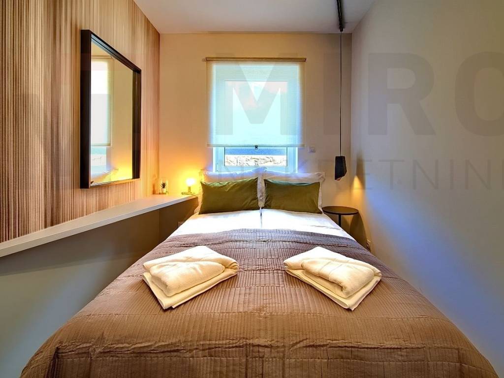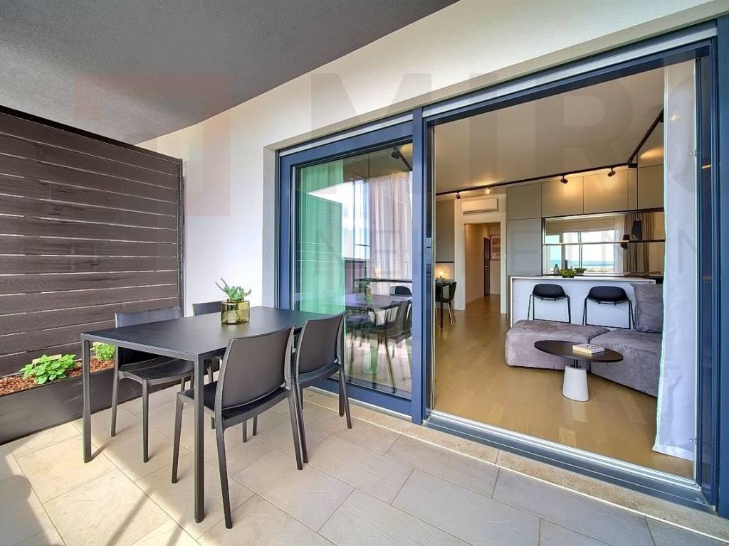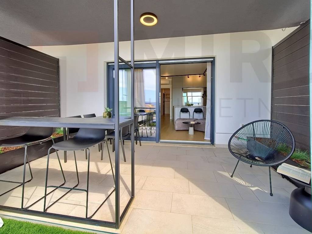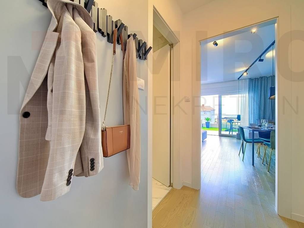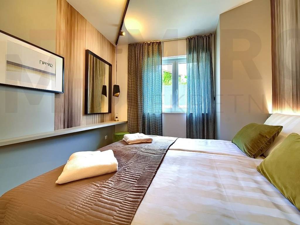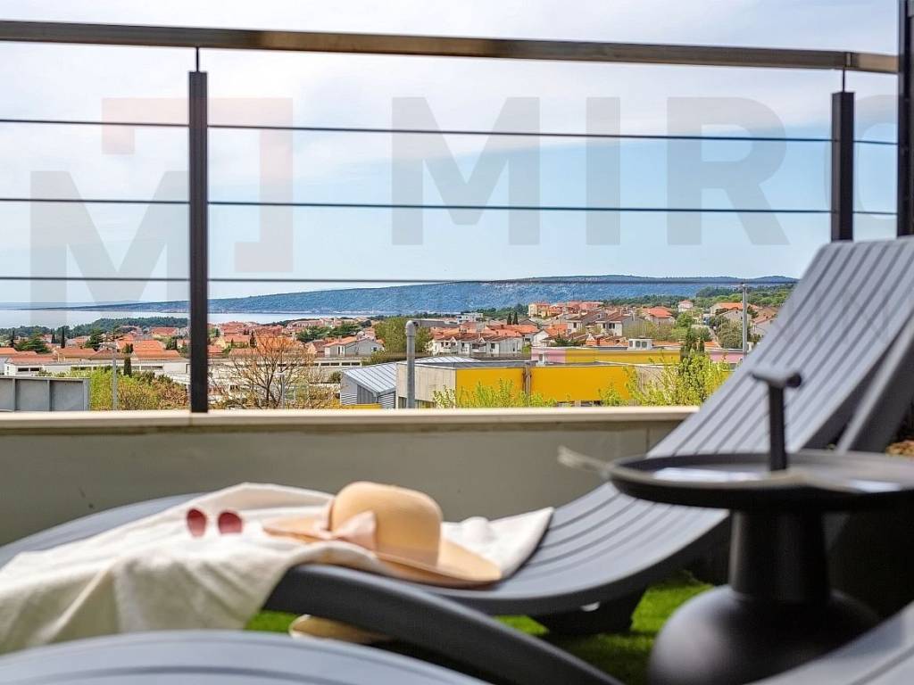 The island of Krk, the castle of Krk, the agency offers an apartment with a total area of 73.20 m2 on the ground floor of a newer, modern building in a very attractive location in the castle The neck. The apartment consists of an entrance hall, two bedrooms, two bathrooms, a spacious living room with kitchen and dining area and a large covered terrace with a beautiful view of the sea and the old castle of Krk. High quality of construction and equipment, PVC carpentry with electric shutters, DAIKIN multisplit cooling/heating system, high-quality parquet floors in the rooms and high-quality ceramics. It also has two parking spaces in the common yard of the building. It is sold fully furnished, has proper documentation and is ready to move into. It is located in an excellent location only 700 m from the center and the beach. The apartment is included in the VAT system and the buyer does not pay real estate sales tax. The seller of the real estate guarantees proper ownership documentation. Visit us and find the square of your home!