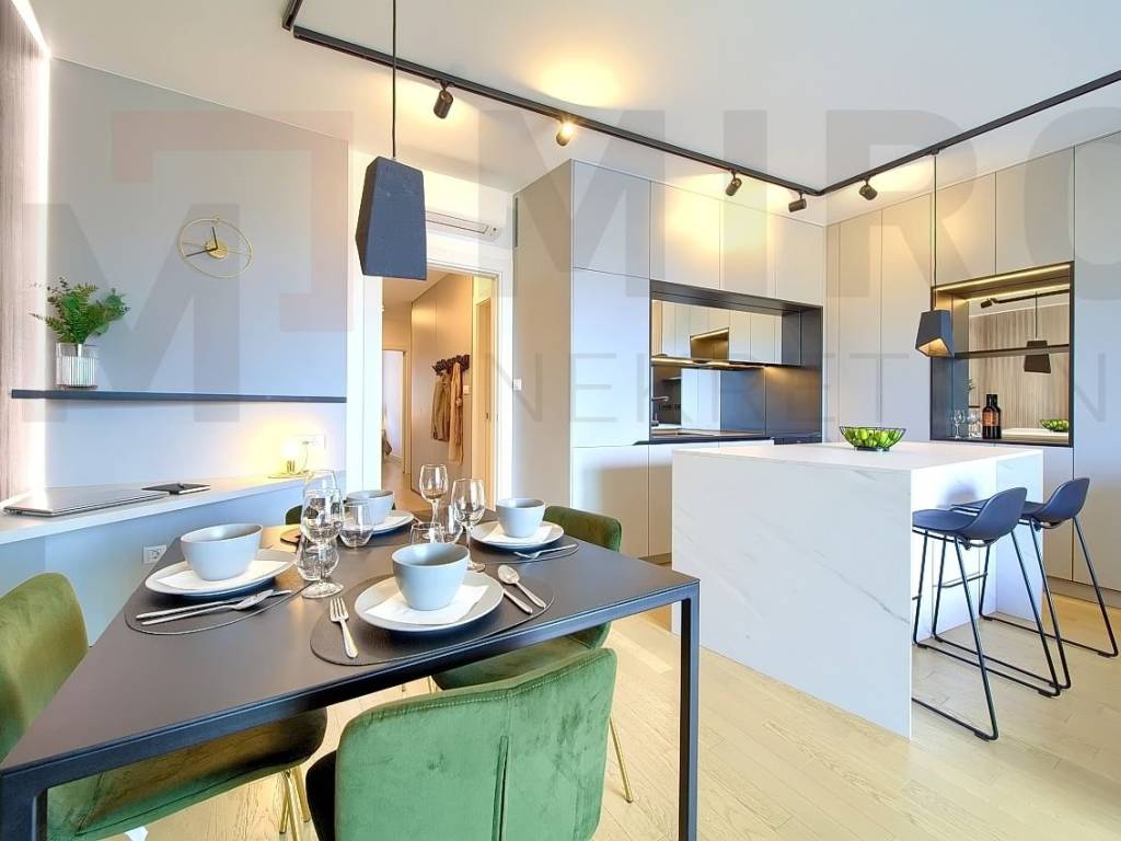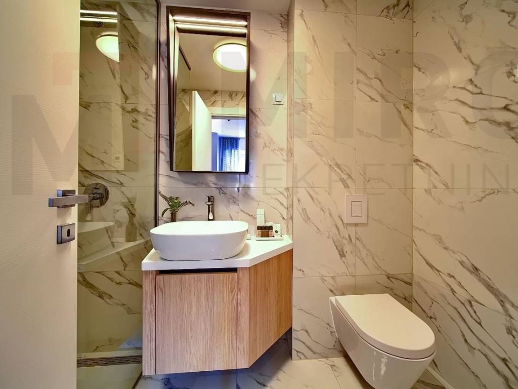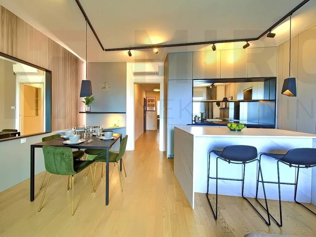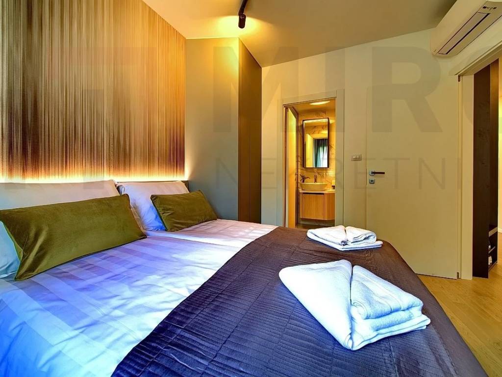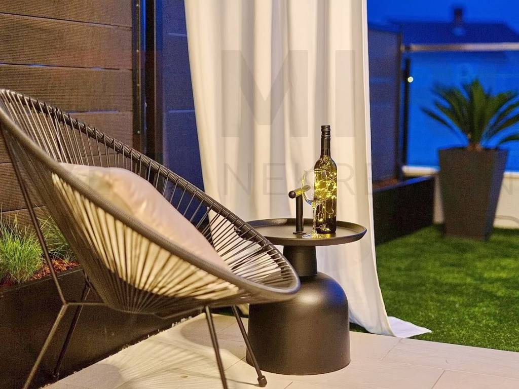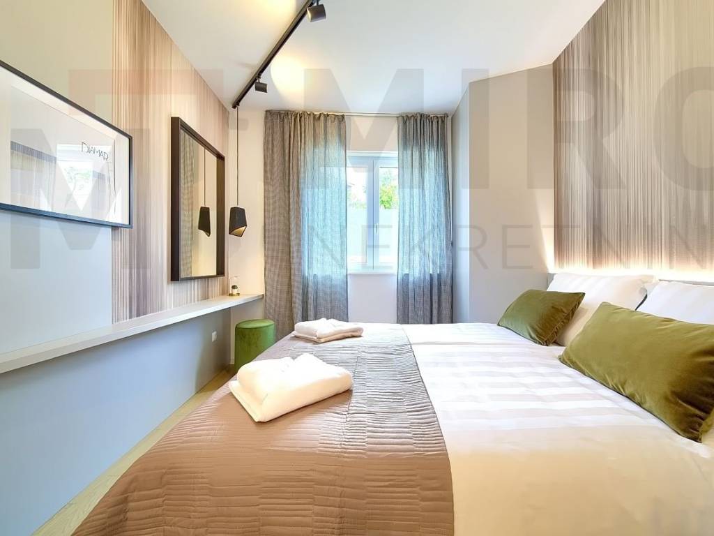 The island of Krk, the castle of Krk, the agency offers an apartment with a total area of 73.20 m2 on the ground floor of a newer, modern building in a very attractive location in the castle The neck. The apartment consists of an entrance hall, two bedrooms, two bathrooms, a spacious living room with kitchen and dining area and a large covered terrace with a beautiful view of the sea and the old castle of Krk. High quality of construction and equipment, PVC carpentry with electric shutters, DAIKIN multisplit cooling/heating system, high-quality parquet floors in the rooms and high-quality ceramics. It also has two parking spaces in the common yard of the building. It is sold fully furnished, has proper documentation and is ready to move into. It is located in an excellent location only 700 m from the center and the beach. The apartment is included in the VAT system and the buyer does not pay real estate sales tax. The seller of the real estate guarantees proper ownership documentation. Visit us and find the square of your home!