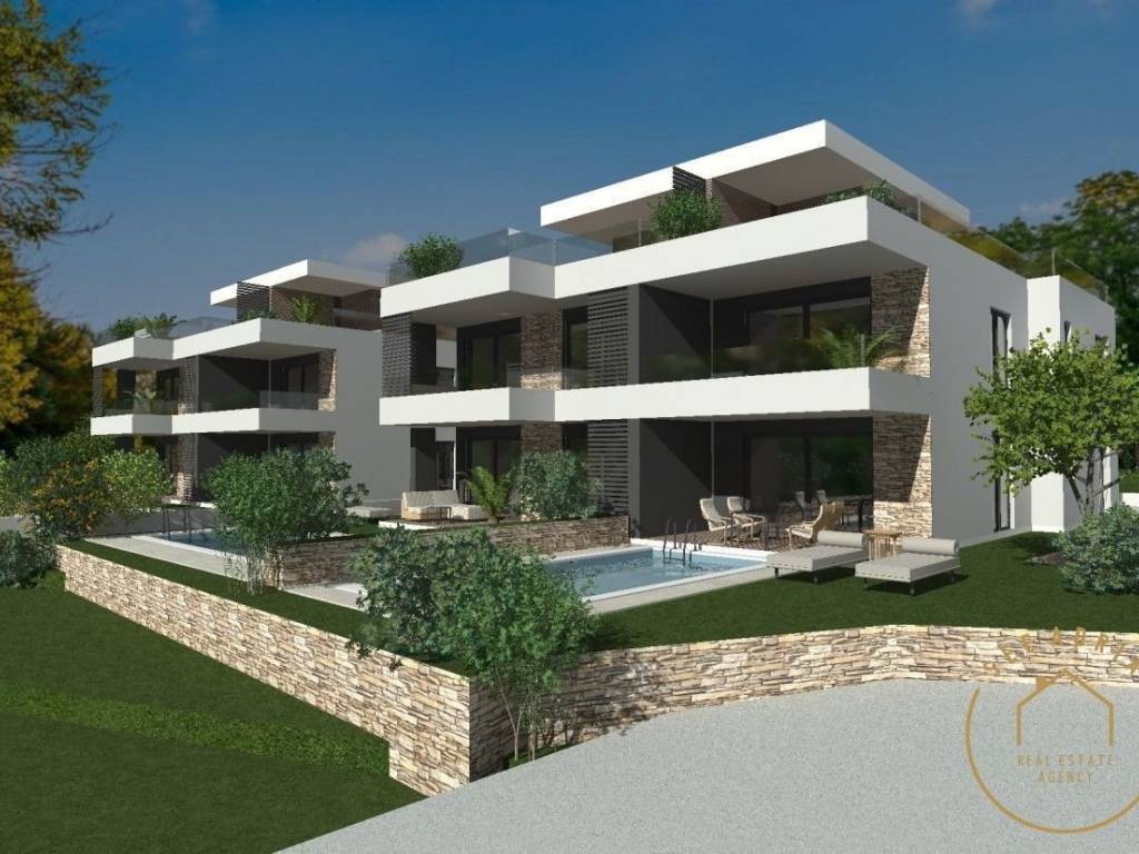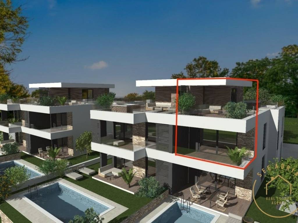 uscite su una terrazza coperta. Dall'appartamento, le scale conducono alla terrazza sul tetto da cui