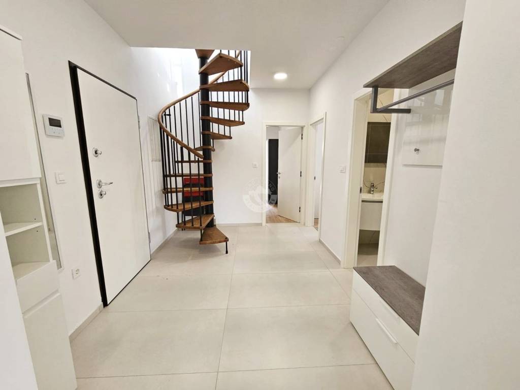 It is situated in a newly built residential building on the 2nd (top) floor. The apartment also includes a roof terrace with a total area of 98 m2 as well as an outdoor parking space.