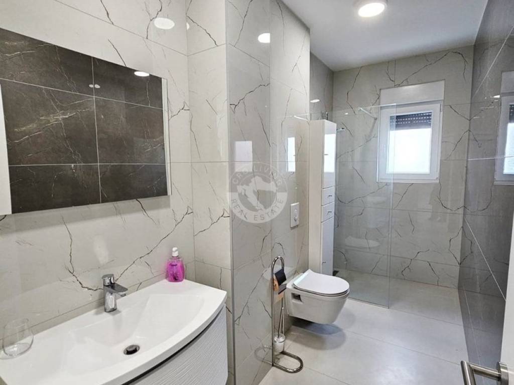 A beautifully furnished apartment is for sale, located in the first row to the sea in the town of Srima near Vodice. The total area of the apartment is 240 m2, with a net usable area of 140 m2.