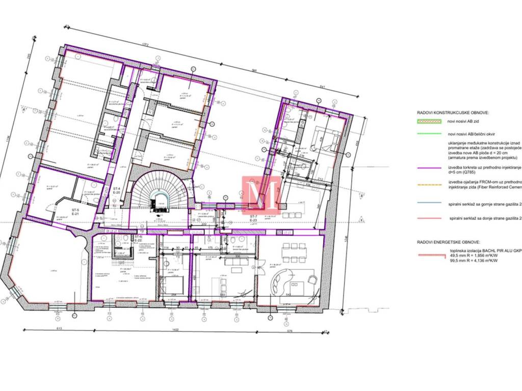 A 3 bedroom apartment in the center of Zagreb, with a total area of 149.39 m, is located on the 2nd floor of a residential building with an elevator. The building underwent structural renovation after the earthquake and is currently in the final phase of energy renovation, which provides future users with a higher quality of living, better energy efficiency and lower utility costs. Completion of the works is planned for summer 2026. The apartment is characterized by a spacious layout and great flexibility of use and can be rented as a single unit or divided into two separate functional units, depending on the needs of the tenant. The lease is scheduled to start on September 1, 2026. Agency commission: 1 monthly rent + VAT.
