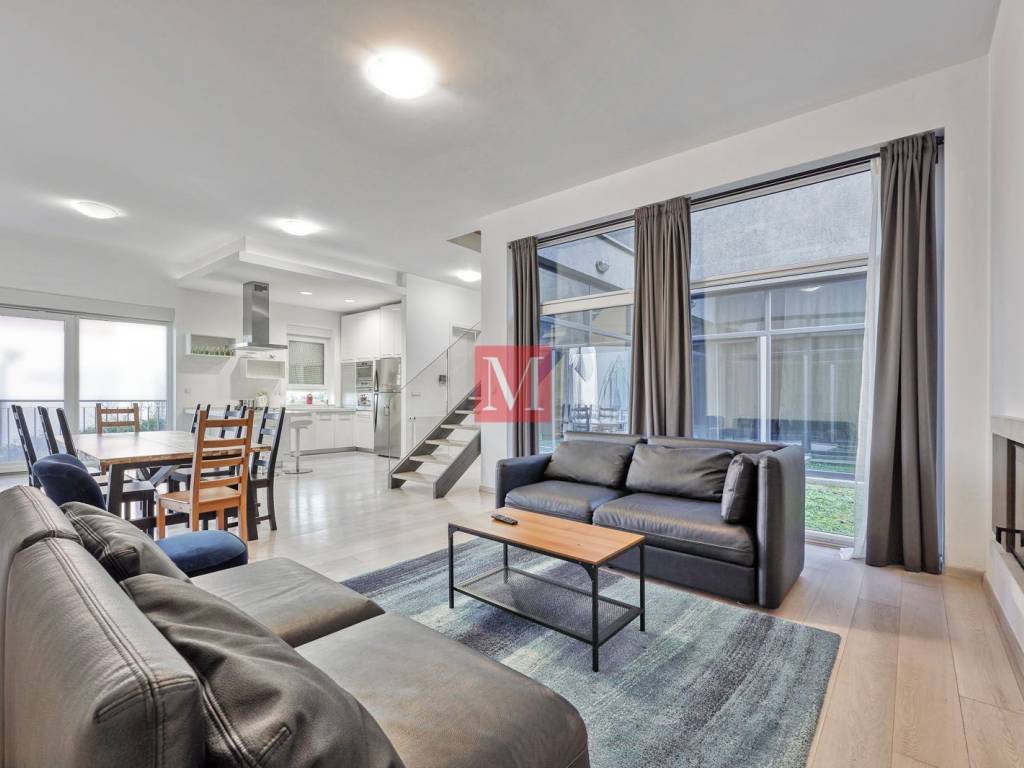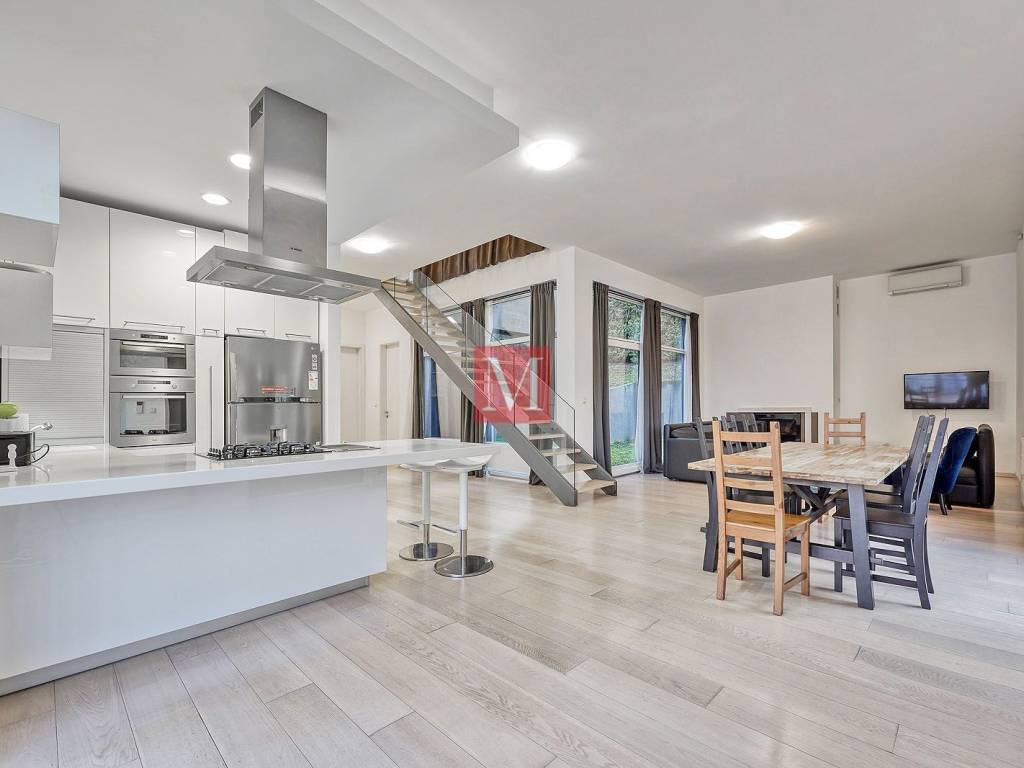 ground floor: entrance hall with a large built-in closet, beautiful open space living room with dining area and kitchen and exit to the terrace and a large garden, guest toilet, laundry room, large storage and study room / bedroom
