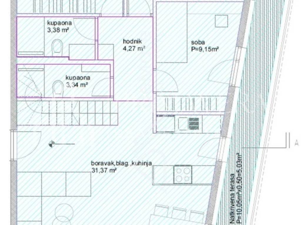 - dnevnog boravka s blagovaonicom i kuhinjom (31,37 m2)