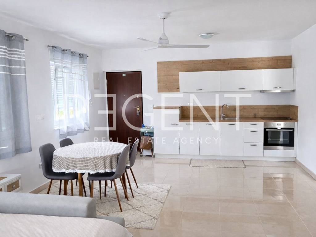 L'appartamento si trova al primo piano di un edificio più recente in una zona tranquilla di Petrčane vicino a Zara, a soli 180 metri dal mare. Grazie alla sua disposizione funzionale, al giardino di pertinenza e ai posti auto custoditi, l'appartamento è un'ottima scelta per famiglie e coppie che cercano uno spazio confortevole per vivere o rilassarsi, ma anche per gli investitori che desiderano una proprietà con un buon potenziale di affitto turistico. L'appartamento è composto da ingresso, cucina con sala da pranzo, soggiorno di 15,30 m², due camere da letto, bagno e WC aggiuntivo. Dal soggiorno si accede alla terrazza coperta di 11,50 m², mentre un ulteriore balcone coperto di 12,50 m² offre uno spazio esterno aggiuntivo per soggiornare e rilassarsi per la maggior parte dell'anno. L'appartamento è orientato a nord e a sud, il che garantisce molta luce naturale durante il giorno. È dotato di riscaldamento a pavimento in tutto l'appartamento, climatizzatori nelle camere da letto, serramenti in PVC e porta blindata, oltre ad elettrodomestici come lavastoviglie, lavatrice e asciugatrice. Il valore speciale della proprietà è dato dal giardino di pertinenza di 18 m² e da due posti auto esterni non coperti per un totale di 32 m². I posti auto hanno un ingresso separato all'edificio, separato dall'ingresso comune dei residenti, che garantisce maggiore praticità e privacy. La proprietà si trova in una zona curata e tranquilla di Petrčane, nota per il suo mare pulito, le belle spiagge e la piacevole atmosfera mediterranea. Nelle immediate vicinanze si trovano negozi, ristoranti e tutti i servizi necessari per la vita quotidiana o le vacanze, mentre il centro di Zara è a pochi minuti di auto. La vicinanza al mare e all'ambiente naturale rende questa posizione particolarmente attraente per la residenza tutto l'anno, ma anche per l'affitto turistico. Per maggiori informazioni o per concordare una visione, non esitate a contattarci.