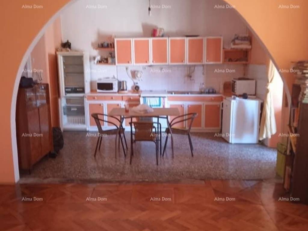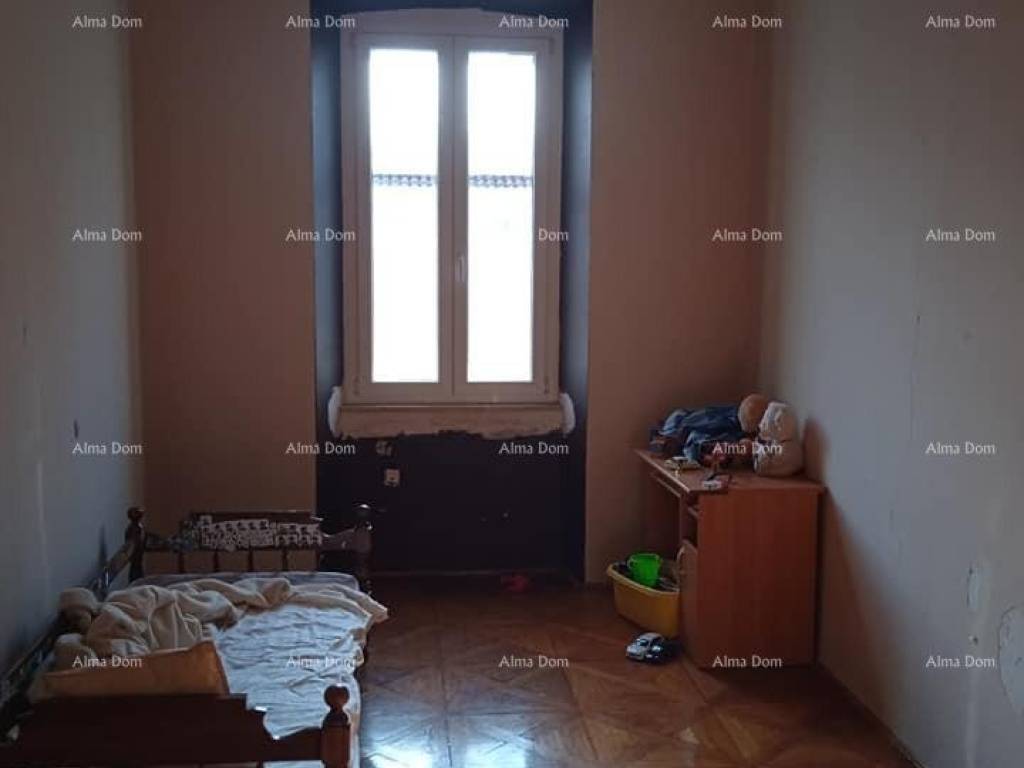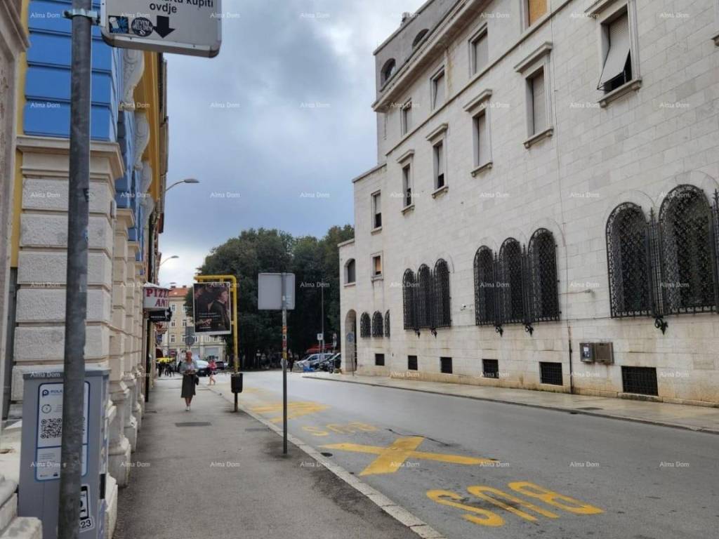 Appartamento in vendita nel centro di Pola. L'appartamento, di 114,5 m2, è composto da tre camere da letto, un soggiorno con cucina, una terrazza e un bagno con WC separato.