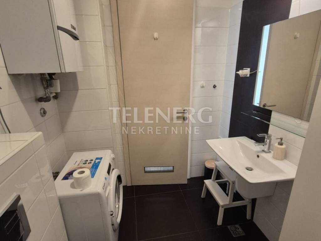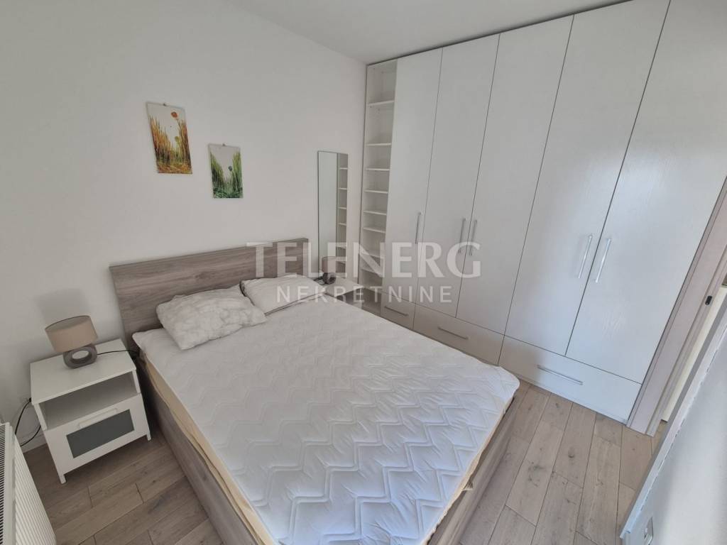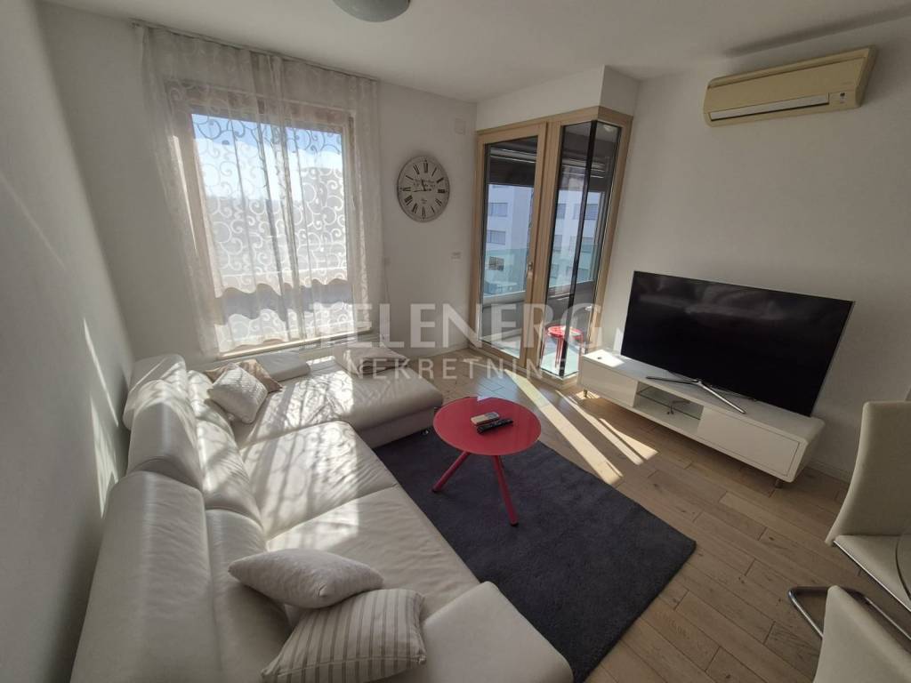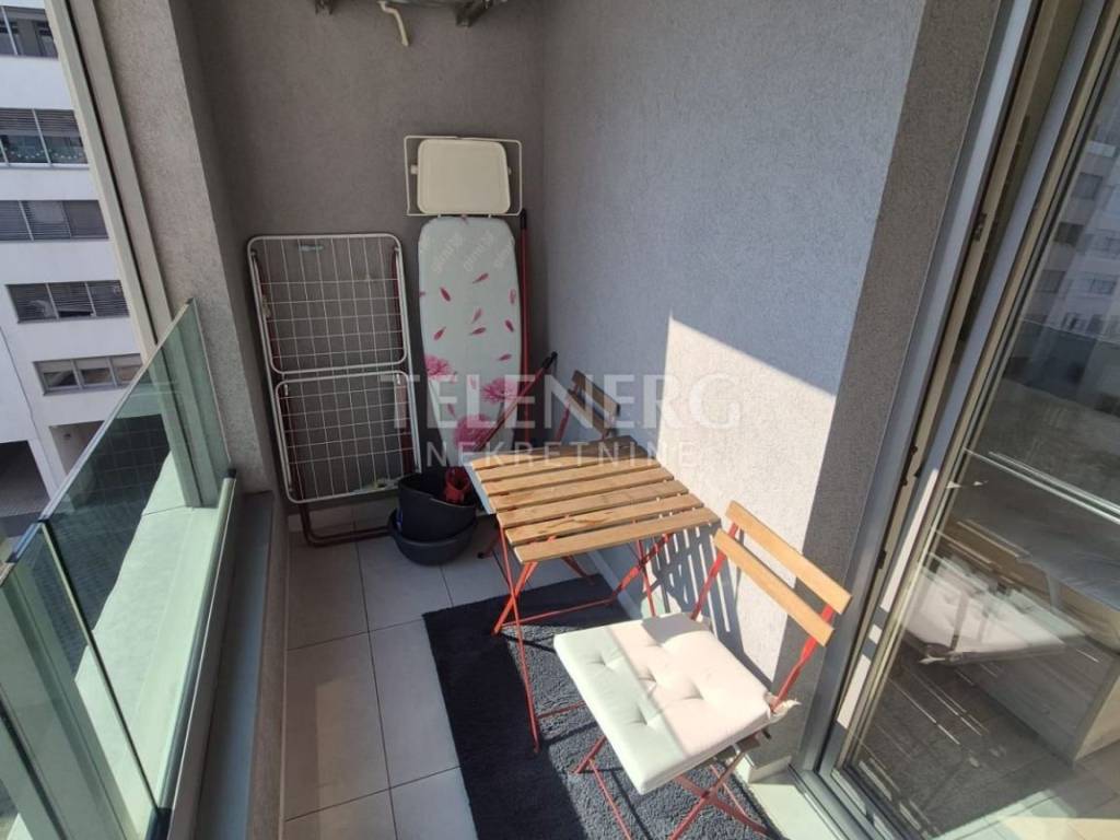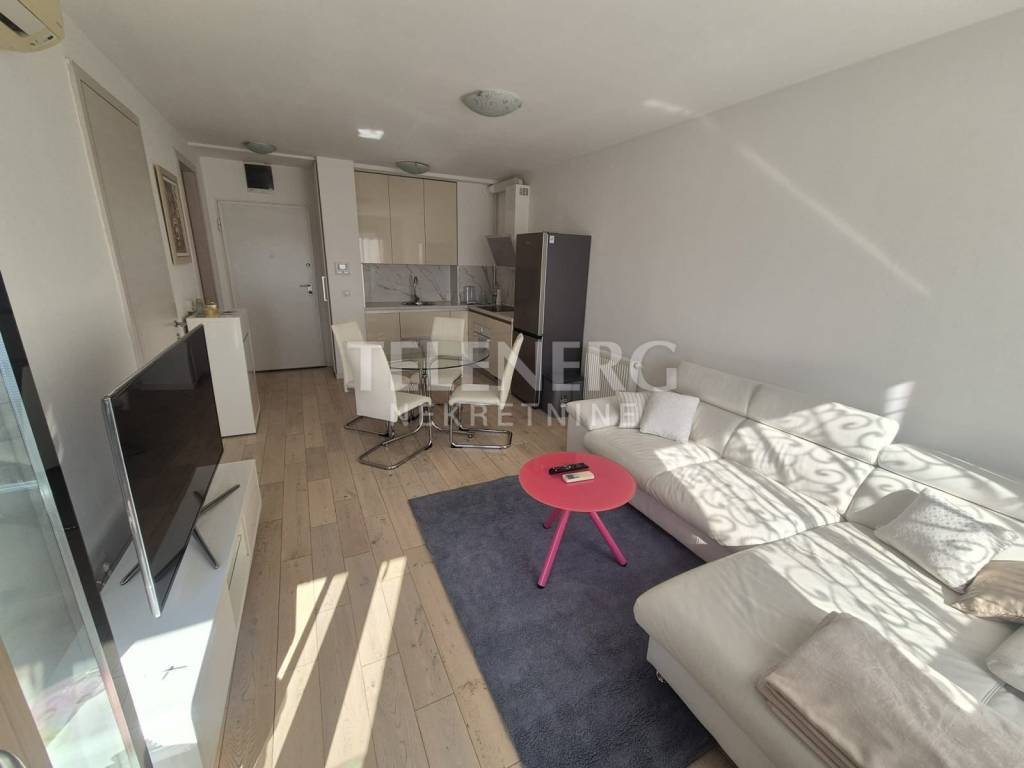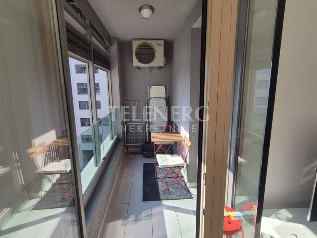 The apartment is located on the fourth floor of a residential-business complex (built in 2013) and consists of an entrance area, large living room and dining room, fully modern equipped kitchen, fully furnished bedroom (140 x 200 bed, large built-in wardrobe), modern bathroom with glass shower cabin and washing machine, closed loggia.
