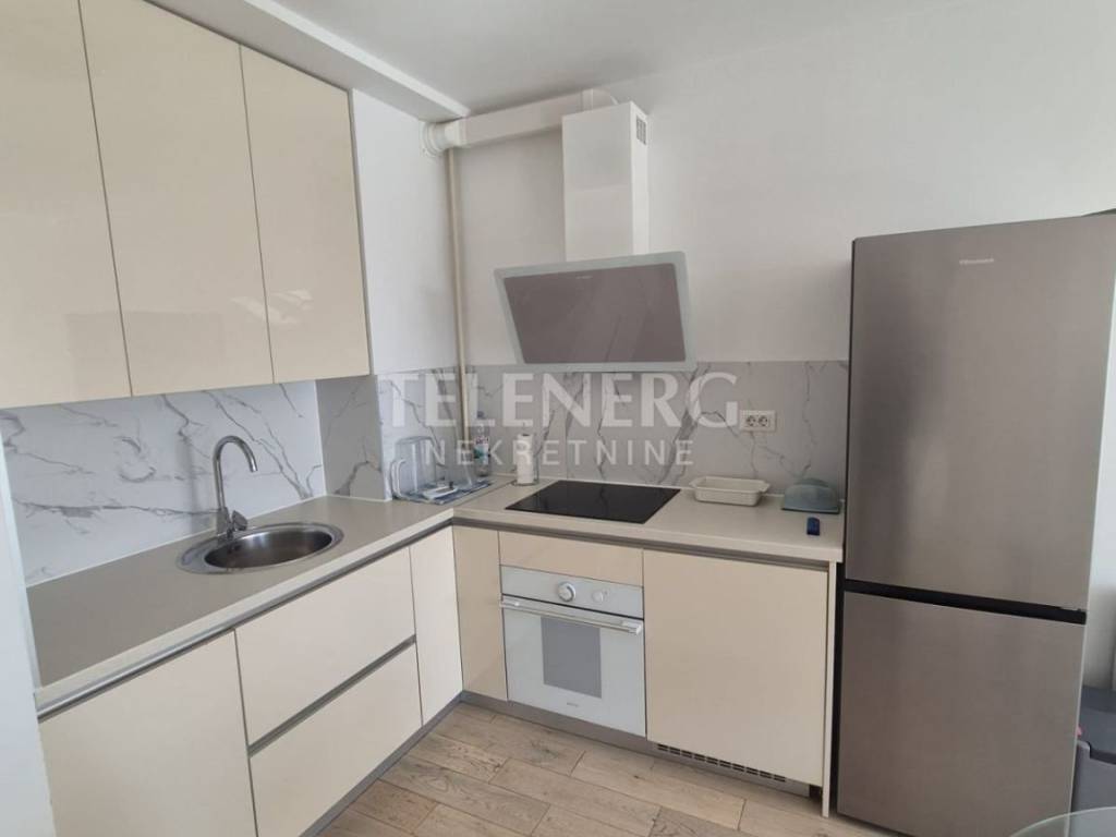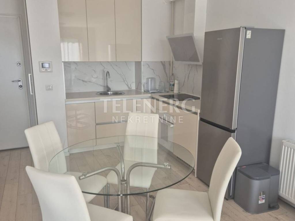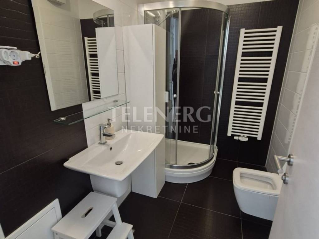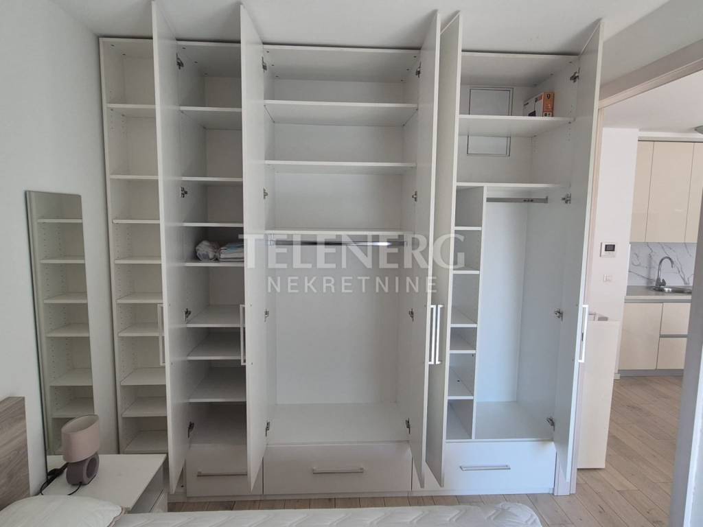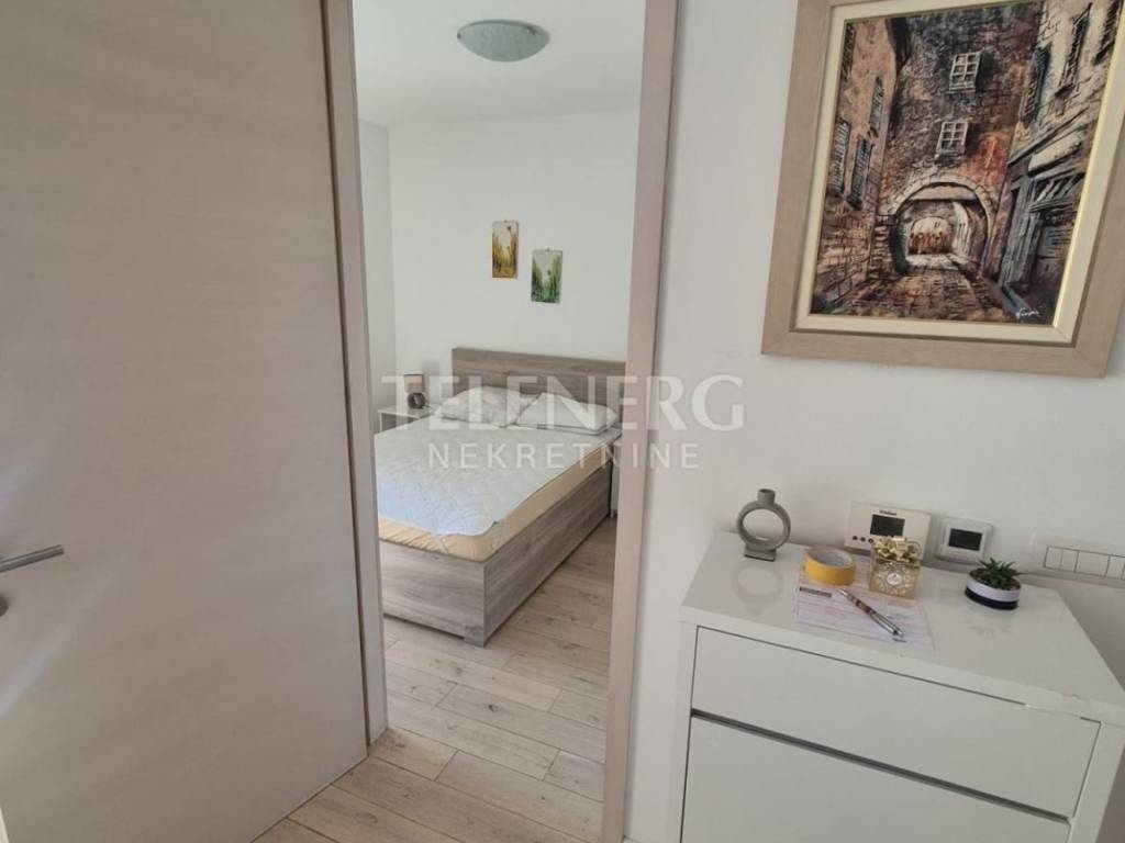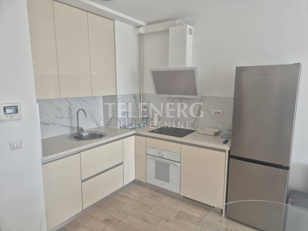 The apartment is located on the fourth floor of a residential-business complex (built in 2013) and consists of an entrance area, large living room and dining room, fully modern equipped kitchen, fully furnished bedroom (140 x 200 bed, large built-in wardrobe), modern bathroom with glass shower cabin and washing machine, closed loggia.