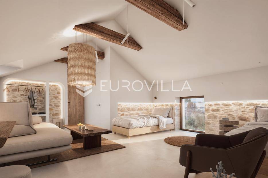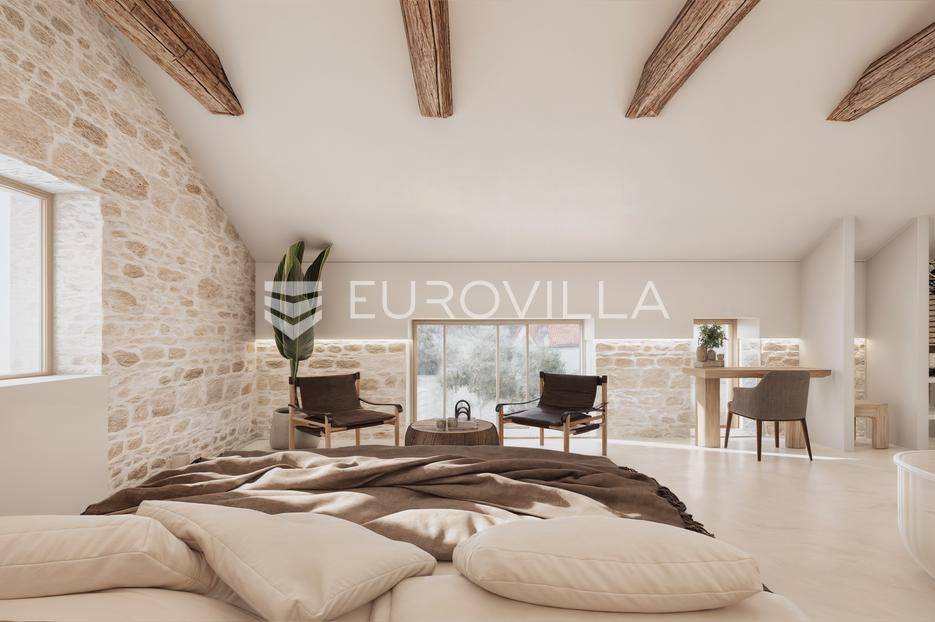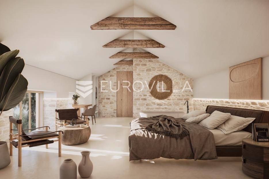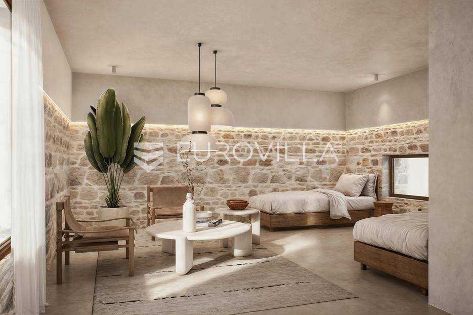 Supetar, kamena kuća za renovaciju s velikim potencijalom.Kuća površine 462 m2 proteže se na tri etaže I nalazi se na parceli od 500 m2 s dodatnim objektom u dvorištu površine 40 m2. Ova povijesna dalmatinska nekretnina nudi jedinstvenu priliku za obnovu čvrste, karakterne građevine u butik hotel, luksuzni apartmanski objekt ili kulinarsku destinaciju.Ključne arhitektonske značajke uključuju:> Debeli kameni zidovi od 1 metra koji pružaju prirodnu izolaciju i iznimnu privatnost> Autentični kameni detalji i originalni elementi interijera, uključujući tradicionalnu peć na drva> Visoki stropovi visoki 3 metra, nudi prostrane volumene za luksuzni život ili komercijalnu upotrebu. Jedinstvena kombinacija arhitektonske baštine i funkcionalnosti - spremna za preoblikovanje u nešto izvanredno.Idealno smještena u srcu Supetra, vila je udaljena samo 2 minute hoda od mora, šarmantnih restorana na obali, lokalne policijske postaje, bolnice, vrtića i škole. Ipak, unatoč svojoj središnjoj lokaciji, nekretnina je skrivena u mirnojsporednoj ulici, nudeći rijetku privatnost i tišinu koja je u prekrasnom kontrastu s obližnjom gradskom živahnošću.Parcela od 500 m² nudi potpunu vizualnu i zvučnu privatnost, s prostorom za dodavanje kamenih zidova ili zelenila kako bi se zaklonile dvije susjedne kuće.Nekretnina posjeduje važeću uporabnu dozvolu, priključena je na struju i vodu, te je spremna za trenutni početak renovacije.Više informacija na upit.... Više na eurovilla.hr, ID: 230500