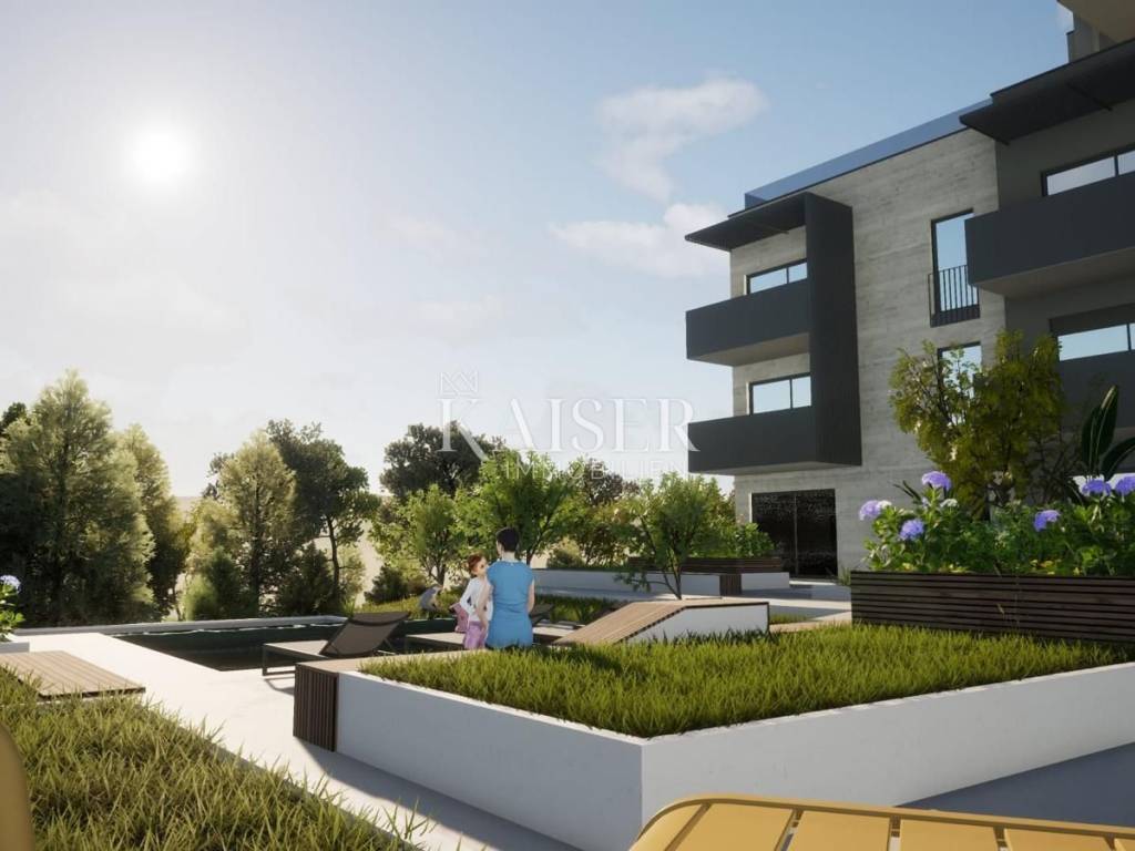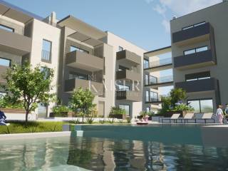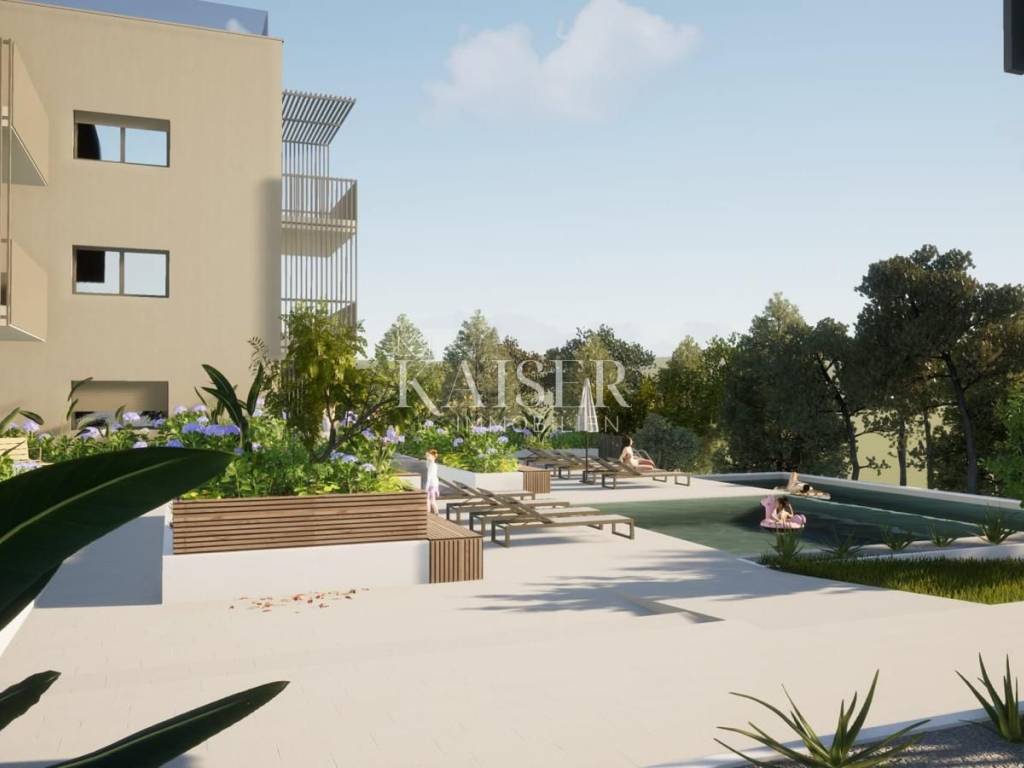 Nel giardino condominiale, i futuri inquilini avranno accesso a due piscine: una più grande per adulti di 70 m² e una per bambini di 30 m², oltre a un'area solarium pavimentata e un'ampia area verde decorata con piante mediterranee e orticoltura.