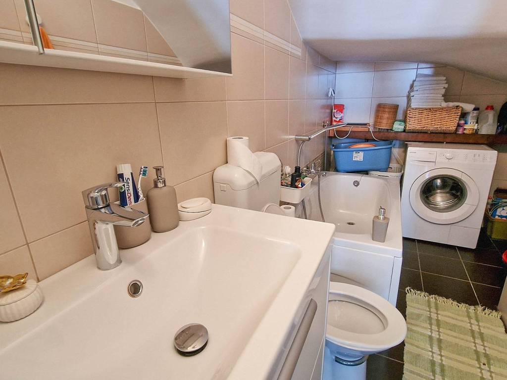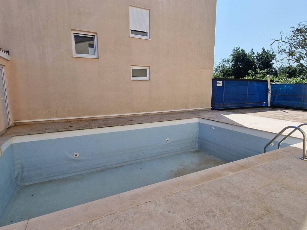 The swimming pool with sun deck, with a total area of 126 m, is located in a beautifully landscaped garden and courtyard of 221 m, providing complete privacy and comfort for outdoor living during the warmer months.