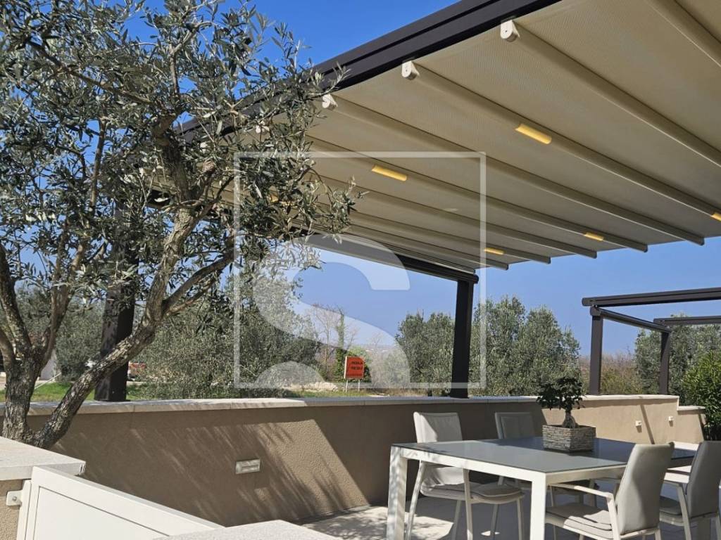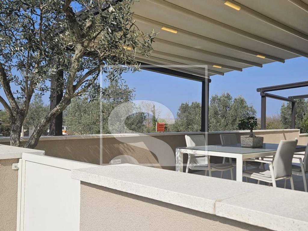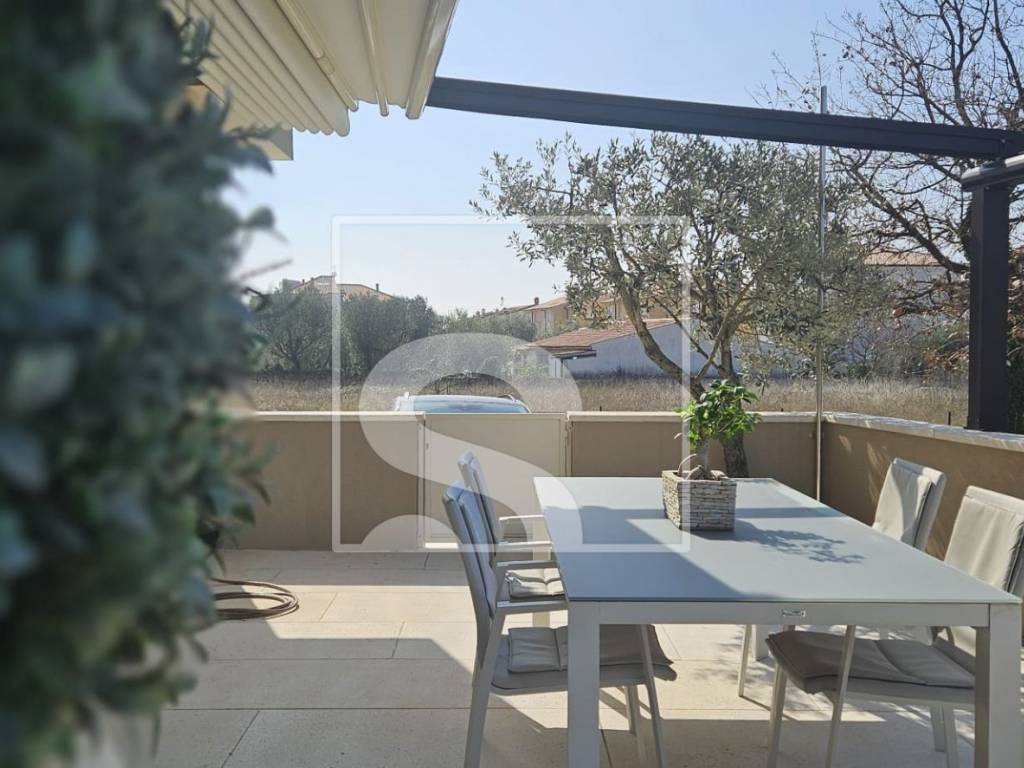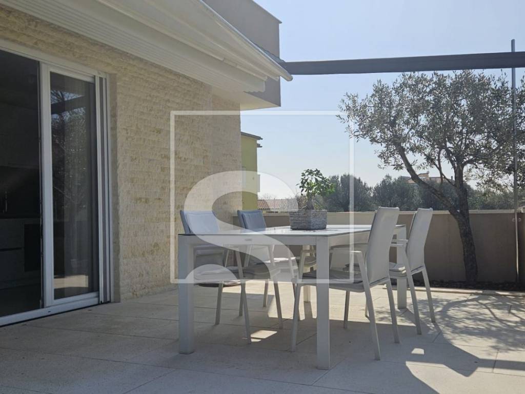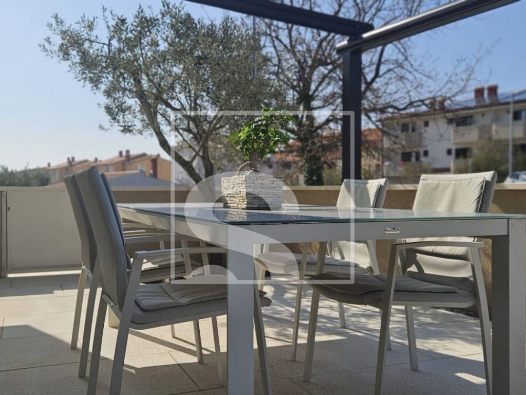 A fully furnished apartment is for sale in Peroj, with a total area of 52 m². It consists of two bedrooms, a storage room, a bathroom, and an open-plan kitchen with dining and living area, opening onto a beautiful 30 m² terrace.