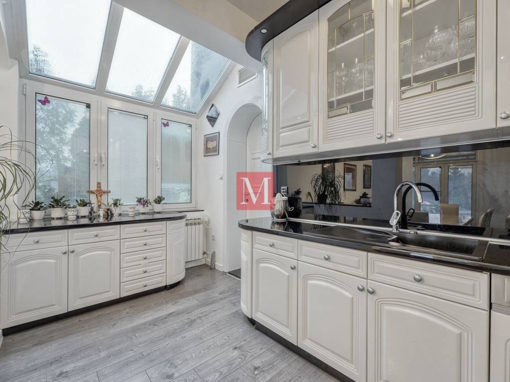 Beautiful, detached 6-room house of 450m2 with a swimming pool and a nice garden, on a quiet position offering views of the town and the slopes of Medvednica in Remete.