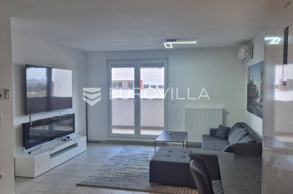 Špansko, dvosoban stana površine 70 m2 na petom katu novoizgrađene stambene zgrade s liftom.Sastoji se od ulaznog hodnika s ugradbenim ormarom, kuhinje, blagovaonice, dnevnog boravka s izlaskom na loggiu 12,47 m2, spavaće sobe i kupaonice. Stanu pripada garažno parkirno mjesto.Stan je opremljen s klima uređajem, perilicom rublja i posuđa, indukcijskom pločom, pećnicom, televizorom visoke rezolucije, usisivačem i posuđem.U neposrednoj blizini se nalazi javni gradski prijevoz, osnovna škola, srednja škola, ljekarna, dom zdravlja, trgovine.Za sve ostale informacije stojimo vam na raspolaganju... Više na eurovilla.hr, ID: 496521