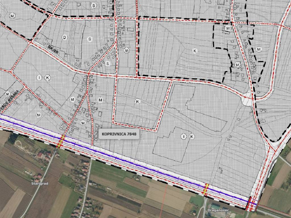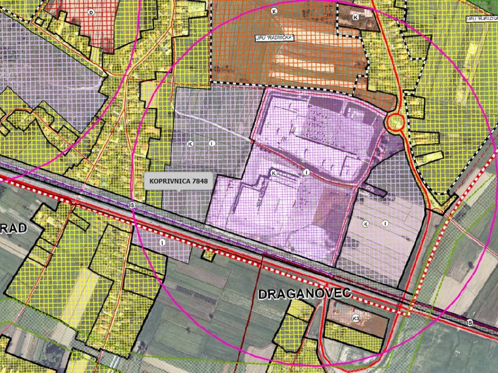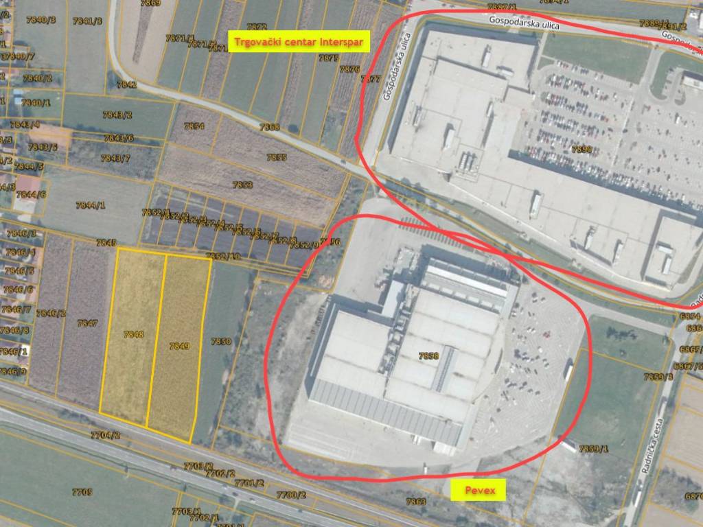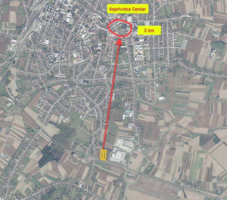 In vendita terreno edificabile di grandi dimensioni destinato alla costruzione di edifici commerciali / centri commerciali ecc. Il terreno si trova nella parte sud della città, all'interno della zona imprenditoriale e direttamente adiacente alla tangenziale della città (direzione Đurđevac). L'accesso al terreno avviene attraverso la zona imprenditoriale. Il terreno confina da un lato con una parcella di proprietà del comune di Koprivnica (superficie 4.951 m2) e dall'altro lato con una parcella di proprietà privata (superficie: 5.528 m2). Poiché è possibile acquistare e unire le particelle adiacenti, è possibile aggregare una superficie totale fino a un massimo di 22.786 m2. Nelle immediate vicinanze si trovano numerose attività commerciali – catene di negozi (Pevex / Interspar) e locali di ristorazione (McDonald's)