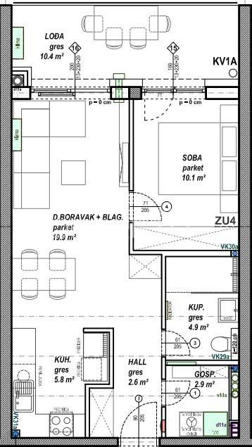 Prodaje se stan površine 46,20 m2 s lođom površine 10,40 m2 na drugom katu niskoenergetske stambeno - poslovne zgrade na odličnoj lokaciji. Zgrada se sastoji od podruma, prizemlja, prvog, drugog i trećeg kata te sadrži ukupno 108 stambenih jedinica i 2 poslovna prostora. Moguć je odabir podnih obloga (keramika, parket ili laminat) te odabir unutarnje stolarije. Uz stan moguća je kupovina vanjskog parkirnog mjesta, garažnog mjesta bez spremišta ili garažnog mjesta sa spremištem.