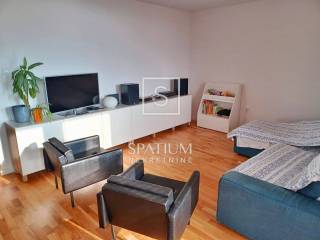 L'appartamento ha una superficie di 90 m² ed è composto da un ampio soggiorno con cucina e sala da pranzo, tre camere da letto, un bagno, un bagno di servizio, una lavanderia, un locale caldaia e una loggia per il relax di tutti i membri della famiglia. L'appartamento dispone di un ripostiglio al piano interrato. L'orientamento dell'appartamento è est-ovest, garantendo sole al mattino e tramonto alla sera.