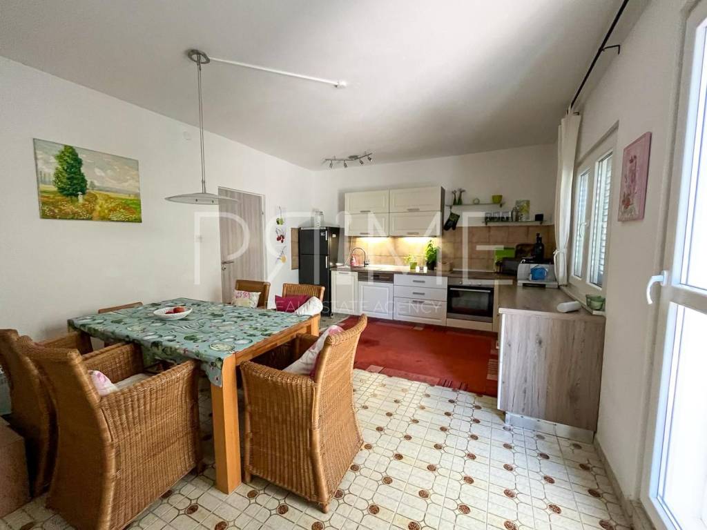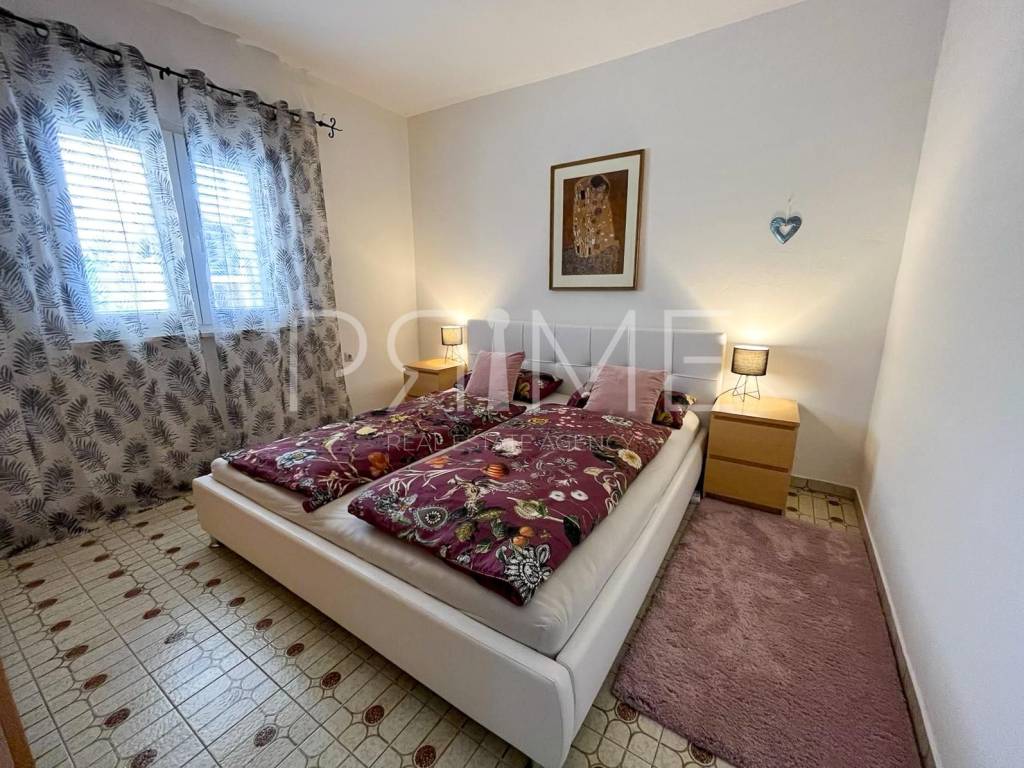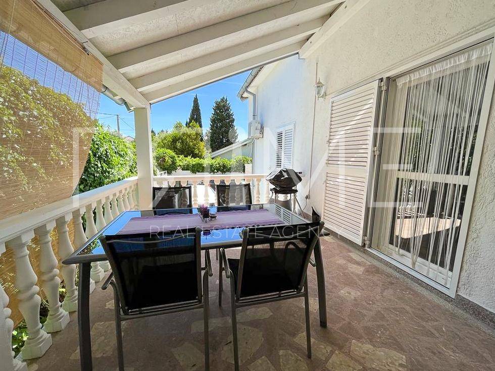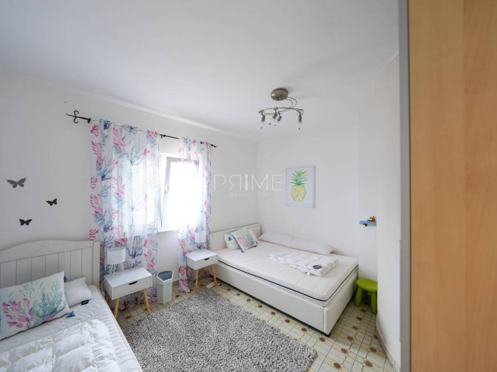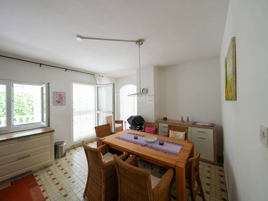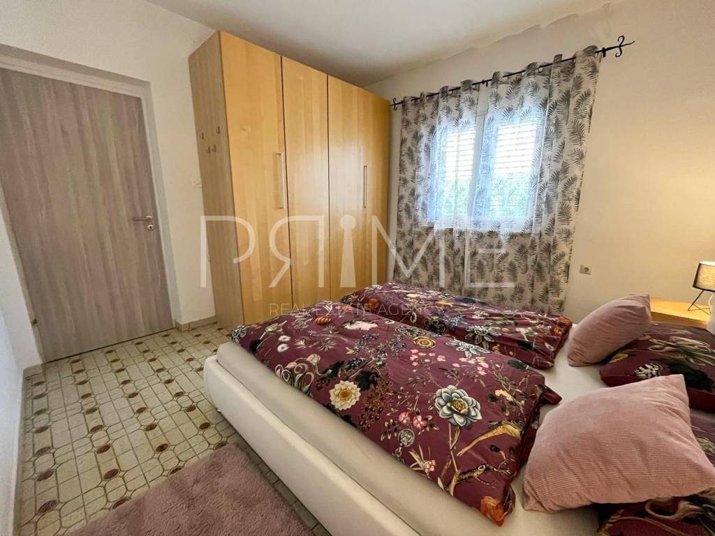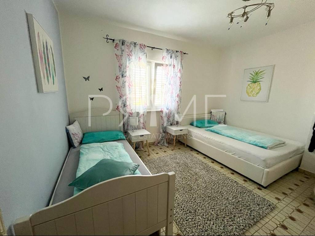 Apartmanska kuća nalazi se u Gornjem Karinu i ima ukupnu stambenu površinu od 226 m² a nalazi  se na parceli od 348 m². Sastoji se od dvije stambene jedinice, odnosno dva dvosobna stana. Gornji stan ima izlaz u potkrovlje u kojem je predviđen dodatni prostor za stanovanje, s pripremljenim instalacijama za kupaonicu i kuhinju te već postavljenim pločicama.Kuća se nalazi na odličnoj lokaciji, svega 200 metara od glavne plaže te nekoliko minuta hoda od centra mjesta, gdje su dostupne trgovine, restorani i svi potrebni sadržaji.Nekretnina je uredno održavana, ne zahtijeva dodatna ulaganja te je renovirana 2022. godine, što je čini spremnom za useljenje ili turistički najam. Uz kuću se nalazi i garaža površine 19 m², kao i dodatni prostor za parkiranje.Kuća se prodaje potpuno namještena i opremljena. Kontaktirajte nas za više informacija ili dogovor oko razgledavanja.