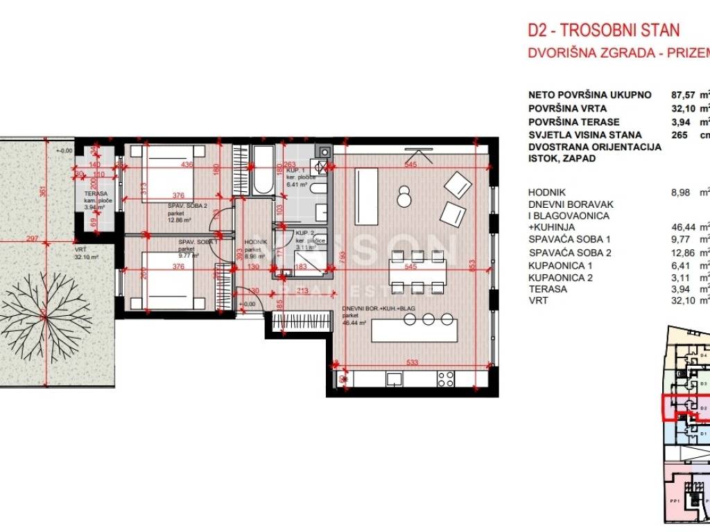 Con l’acquisto dell’appartamento è obbligatorio acquistare un posto auto in garage (GPM) con ripostiglio, al prezzo di 55.000 euro.