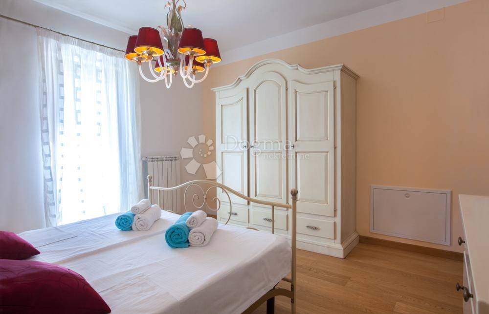 It consists of *4 bedrooms*, a spacious living room, a fully equipped kitchen (fridge, coffee maker and all necessary appliances) and **3 bathrooms** with shower and bidet.