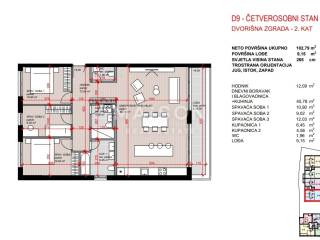 In vendita un appartamento situato in una zona molto ricercata, vicino a tutti i servizi necessari per una vita quotidiana confortevole. L’appartamento si trova al secondo piano dell’edificio e ha una superficie netta di 102,79 m², mentre la superficie reale è di 111,94 m². L’appartamento è orientato a sud, est e ovest.