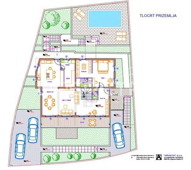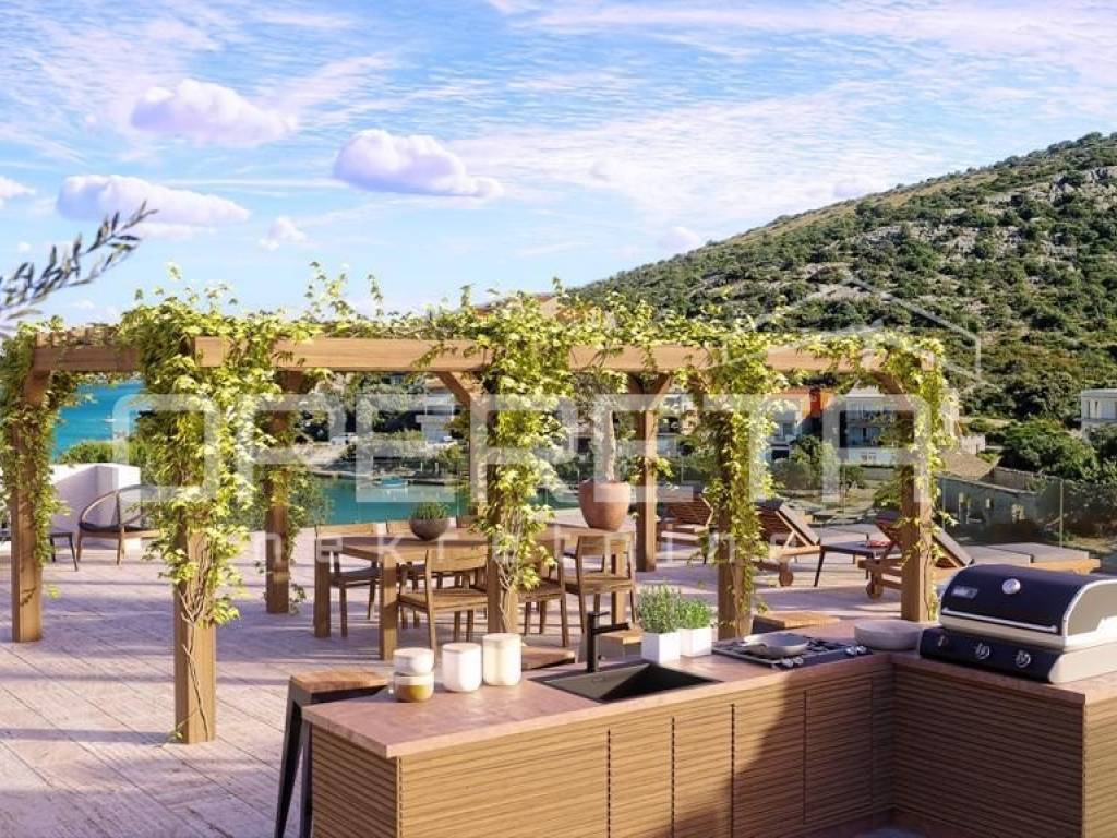 In una posizione eccezionale in riva al mare, in una tranquilla insenatura della cittadina di Ražanj, vicino a Rogoznica, sorge questa moderna villa in costruzione, che si distingue per la sua vista panoramica sul mare e il contatto diretto con l'ambiente naturale mediterraneo. Situata in prima fila sul mare, la proprietà offre una rara combinazione di privacy, posizione esclusiva sulla costa e viste aperte che rappresentano un valore inestimabile di questa località.