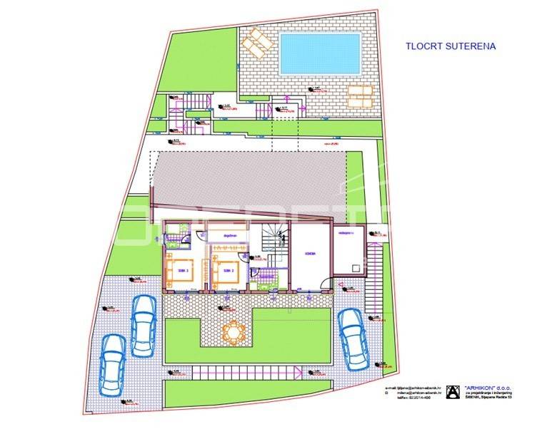 Il progetto prevede una villa contemporanea con una superficie totale di circa 250 m distribuita su più piani, con un concetto architettonico che sfrutta al massimo la luce naturale, le viste aperte e gli spazi esterni. Il piano inferiore è concepito come zona privata con diversi ambienti dedicati al relax e al soggiorno, tra cui camere da letto con bagno privato e spazi aggiuntivi che possono essere adibiti a salotto, bar o area conviviale.