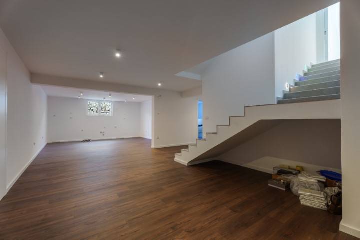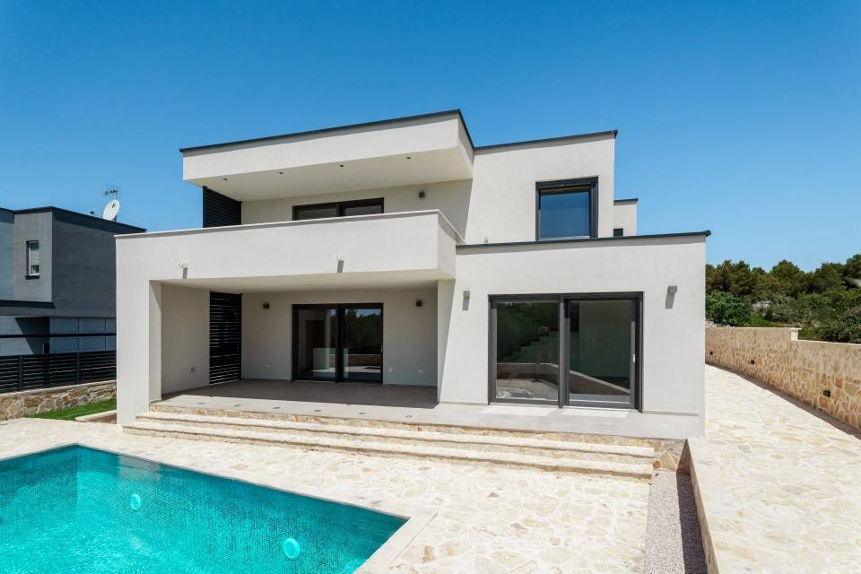 In the peaceful surroundings of Brodarica, this modern villa stands out with its spaciousness, brightness, and thoughtful design. Every room in this villa exudes airiness and comfort, creating the perfect environment for relaxation and enjoyment. The villa spans three levels: the basement, ground floor, and first floor. The basement has a separate entrance, making it extremely practical and offering various usage possibilities. It includes a technical room and a spacious open area, ideal for customization to suit your needs – from a gym to a guest area. An additional advantage of this space is the possibility of installing a fireplace, which will create a cozy atmosphere during the colder days. The ground floor features an open-concept layout, where the living room, kitchen, and dining area form a harmonious unit. The kitchen, equipped with top-quality appliances, is designed for maximum functionality. A guest WC is also located on the ground floor, adding to the practicality of the space. The spacious living room opens onto a terrace with a pool and Mediterranean garden – a perfect place for family gatherings and moments of relaxation. On the first floor, there are three spacious bedrooms, each filled with natural light and carefully selected details to ensure maximum comfort. The bathrooms are designed to provide a sense of luxury and spaciousness, with modern designs and high-quality materials. The master bedroom further stands out with its walk-in closet, en suite bathroom, and access to a terrace with a stunning view of the greenery. The villa is equipped with underfloor heating, an energy-efficient heat pump, and solar panels, ensuring sustainability and comfort throughout the year. Mosquito nets and shutters on the windows add to the practicality and privacy. Broderica is a peaceful settlement south of Šibenik, known for its beautiful beaches, crystal-clear sea, and relaxing Mediterranean ambiance. This charming location is ideal for family vac