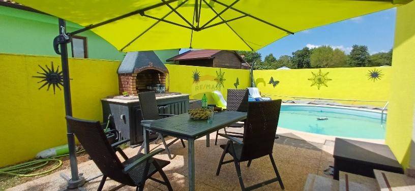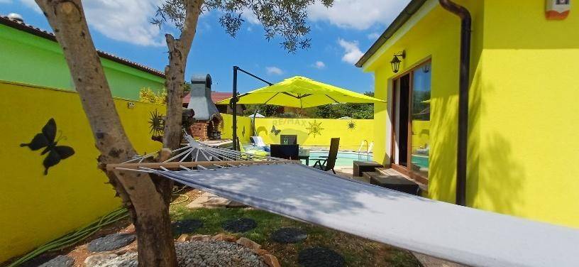 In esclusiva con l'agenzia ReMax Pula vi offriamo questa bellissima casa ad un piano con piscina situata in una strada tranquilla e privata nella località di Marčana. Su un terreno di 291 m2 si trova una casa di 85 m2, una piscina di 20 m2 e un cortile di 186 m2. La casa è composta da un ingresso, un bagno con doccia idromassaggio e WC, due camere da letto di dimensioni standard, un bagno con vasca ad angolo e WC, cucina e soggiorno. Oltre alla piscina, nel giardino paesaggistico c'è anche una terrazza con barbecue e una casetta in legno per riporre gli attrezzi e altri oggetti domestici. Insieme alla casa ottieni anche 1/5 della comproprietà sulla strada, che è proprietà privata. La casa viene venduta completamente arredata. Ideale per un soggiorno tutto l'anno o come proprietà in affitto (stagionale o a lungo termine)